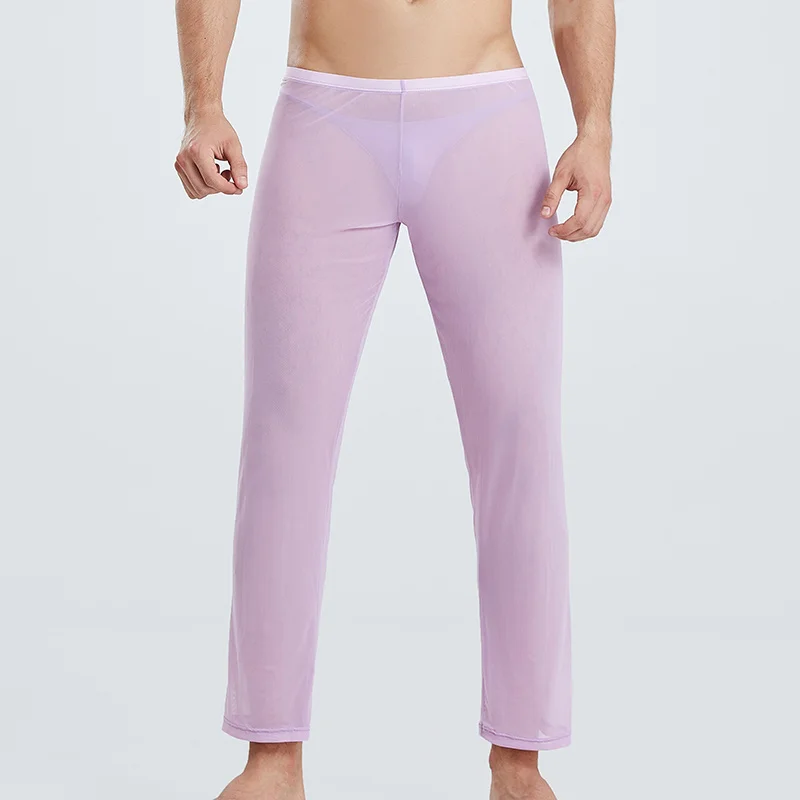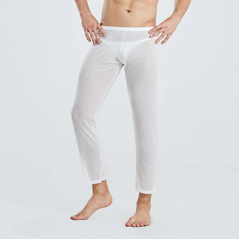 Мужские пикантные сетчатые прозрачные ультратонкие штаны-скольжения для сна, повседневные штаны для отдыха, Спортивное нижнее белье, пижамы, штаны для сна