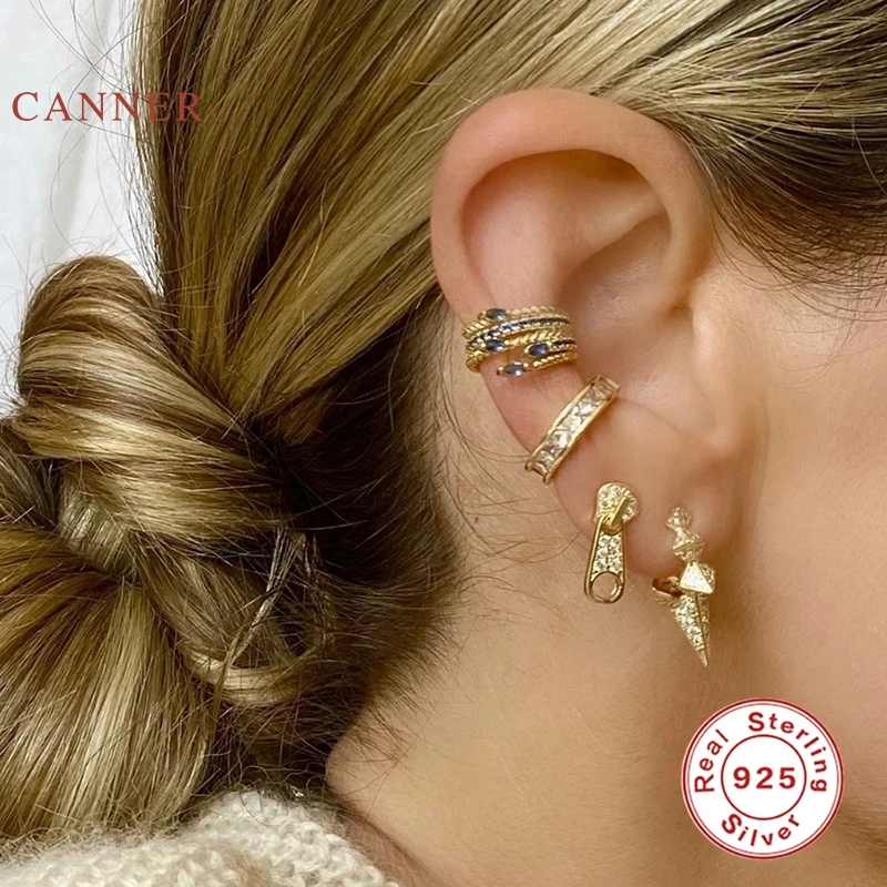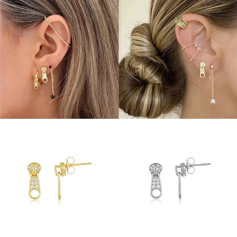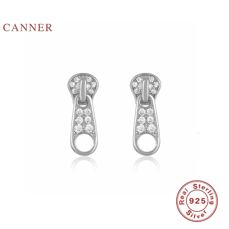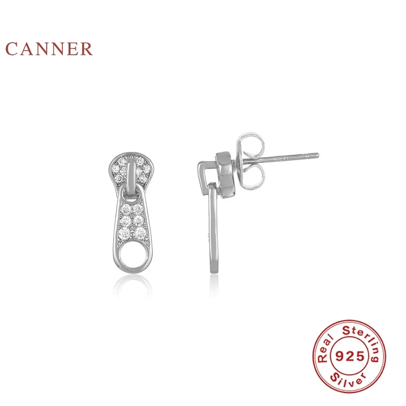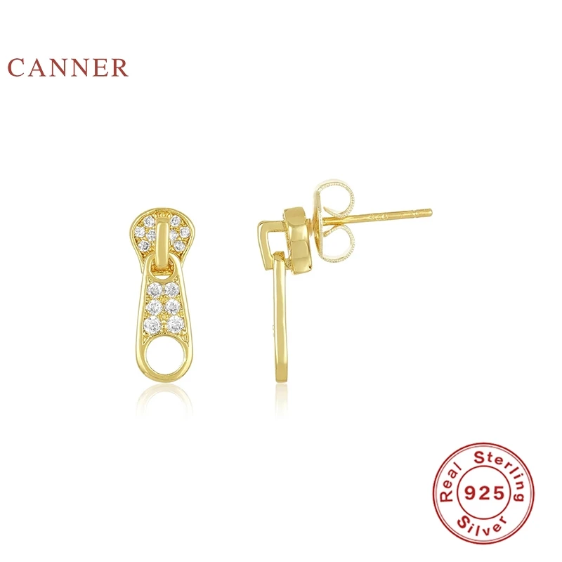 Женские серьги-гвоздики на молнии CANNER, серьги из стерлингового серебра 925 пробы с цирконием, ювелирные изделия из серебра и золота в Корейском стиле