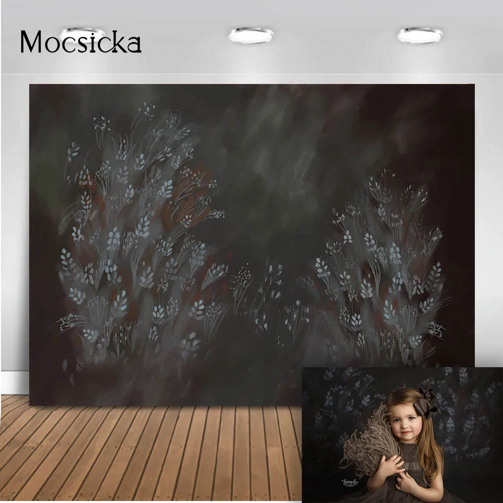 Фон для фотосъемки новорожденных, цветочный рисунок маслом, черный фон для Фотокабины, студии, фотосессии, детских портретов