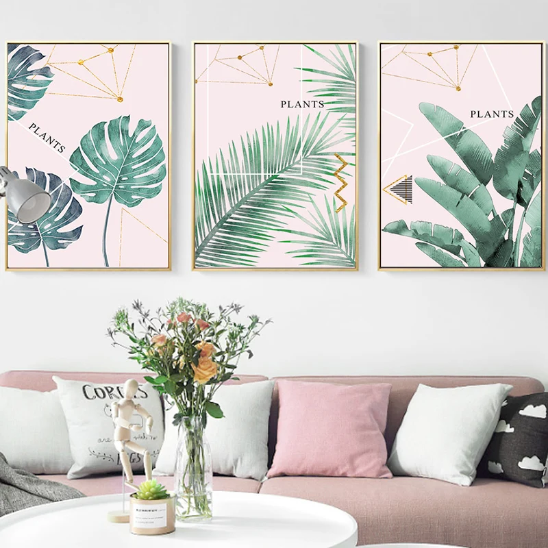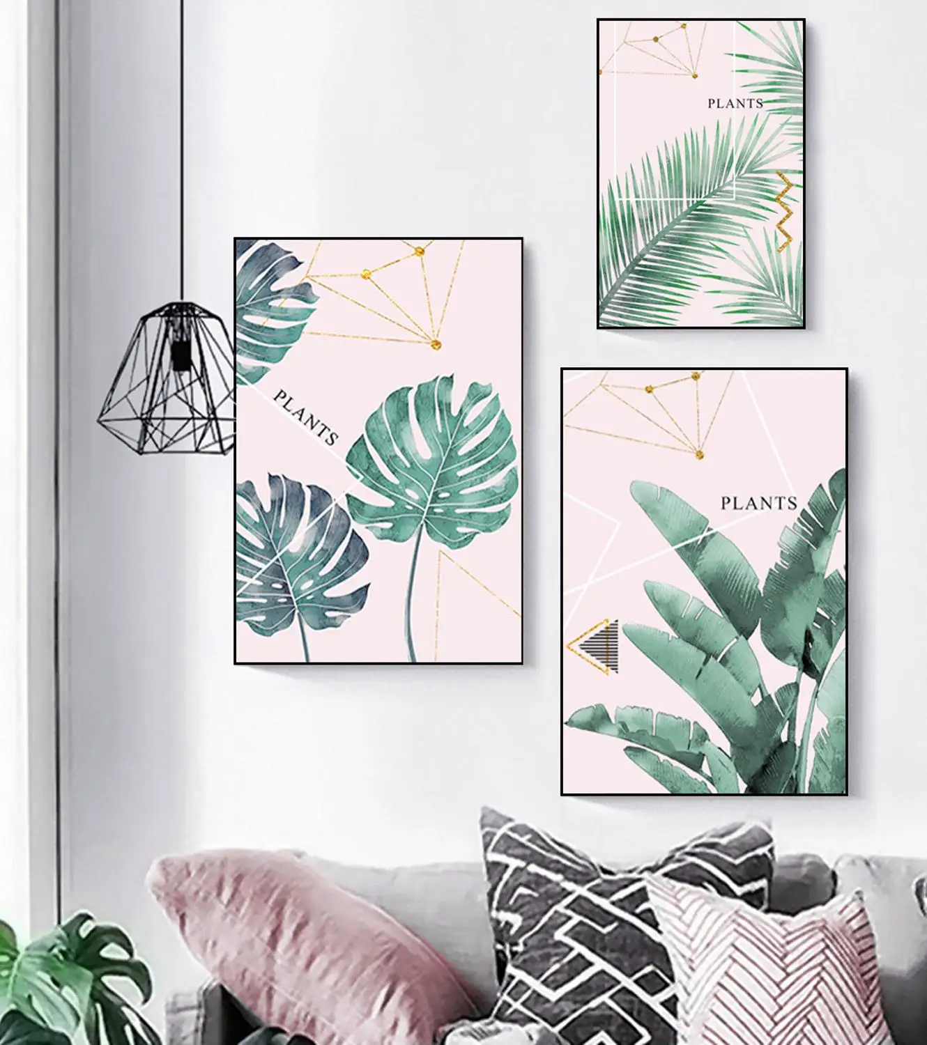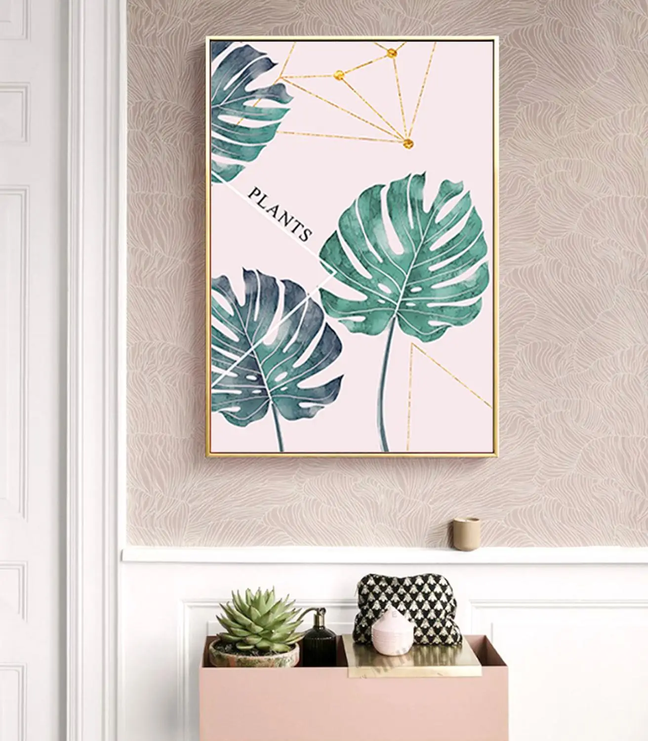 Нордическое зеленое растение Monstera украшение холст картина Золотая Геометрическая линия Художественная Картина Настенная гостиная украшение для спальни