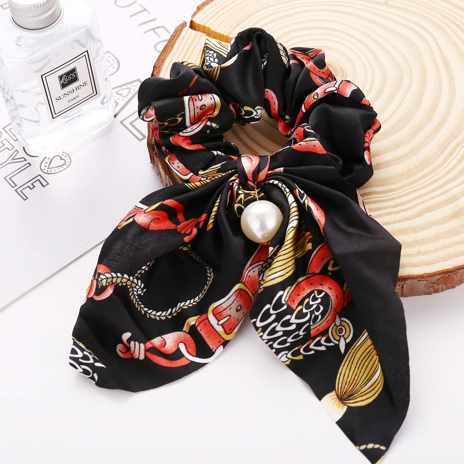 Модная одежда с цветочным принтом и бантом для волос Scrunchies жен...