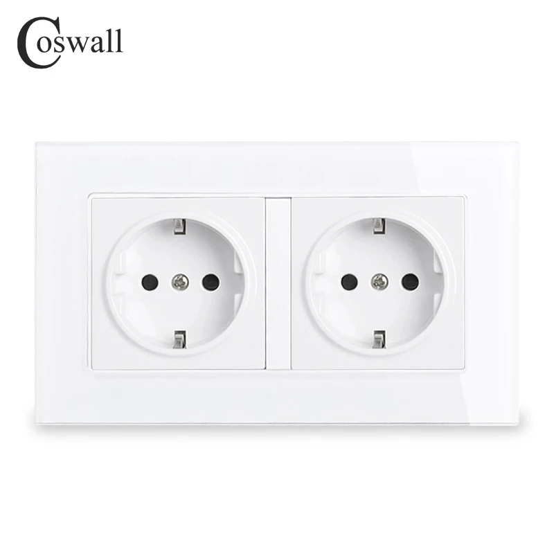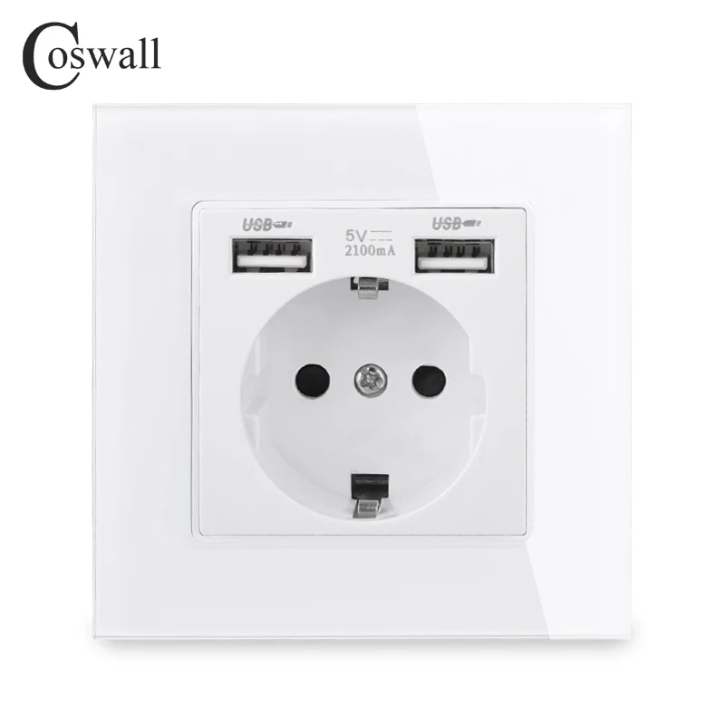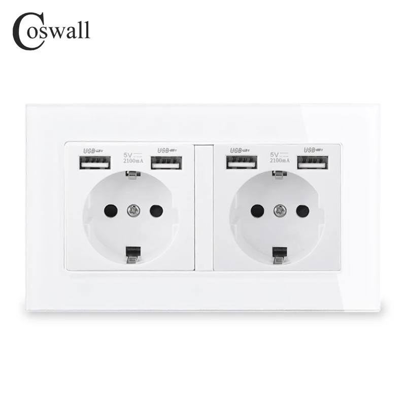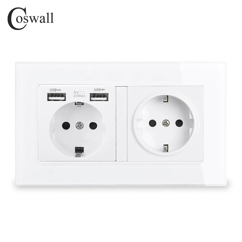 COSWALL, Россия, Испания, настенная розетка стандарта ЕС, USB-порт для зарядки, стеклянная панель черного, белого, серого цвета, серия C1, полный ассортимент