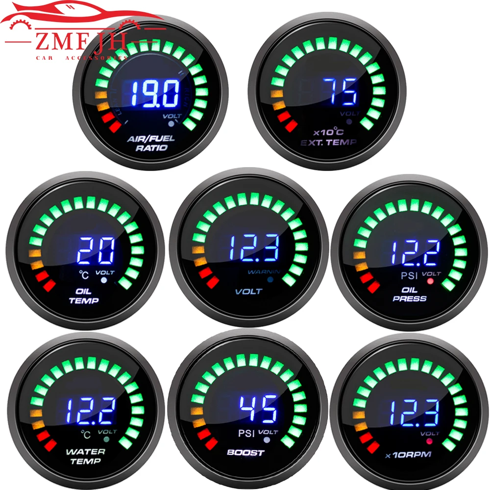 52 мм Автомобильный цифровой рефлектометр для увеличения объема воздуха и топлива, соотношение температуры и температуры воды и масла, Масляный Пресс, манометр EGT, синий светодиодный цифровой измеритель