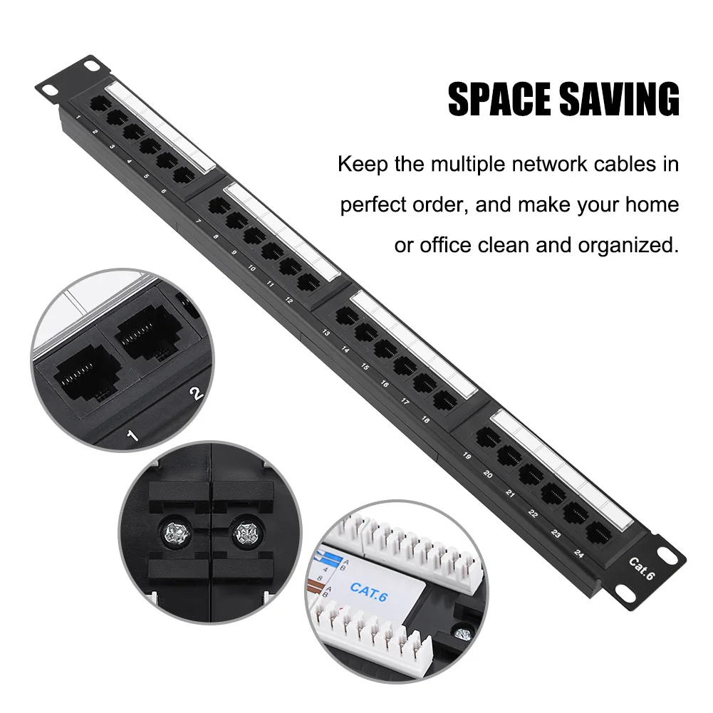 19-дюймовая 24-портовая коммутационная панель для передачи данных, высокоскоростная сетевая кабельная стойка CAT6 CAT-6, офисные компьютерные кабели, разъемы