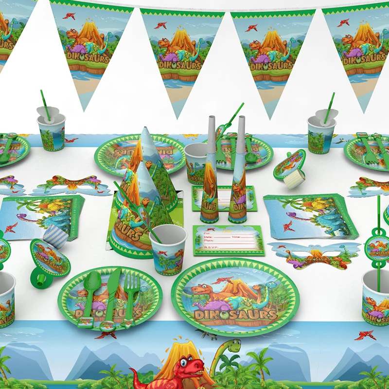 Зеленая динозавр, одноразовая посуда, Мультяшные принадлежности для...