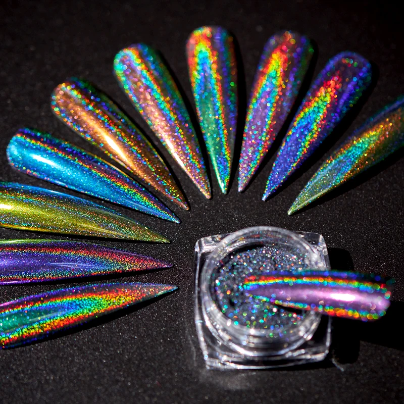 Зеркало-хамелеон, лазерная Серебряная блестящая голографическая пудра для ногтей Auroras, хромированная пигментная пыль, сделай сам