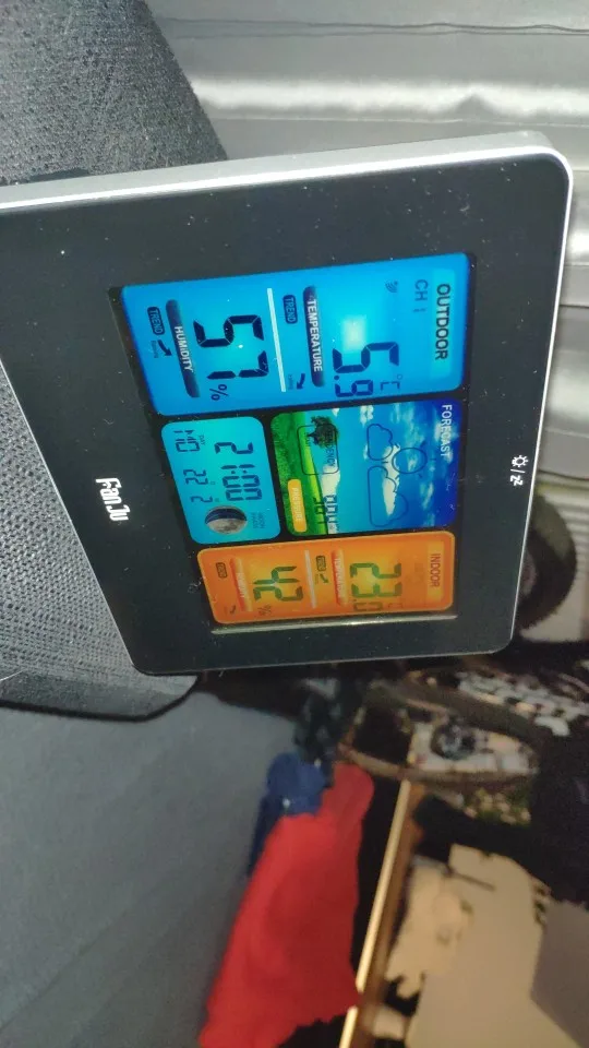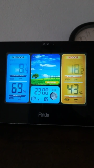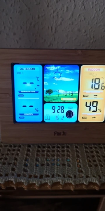 Очень красивая Погодная станция. Я подключил его, и он очень яркий. Температура соответствует моему другому термометру. Настоятельно рекомендуем!