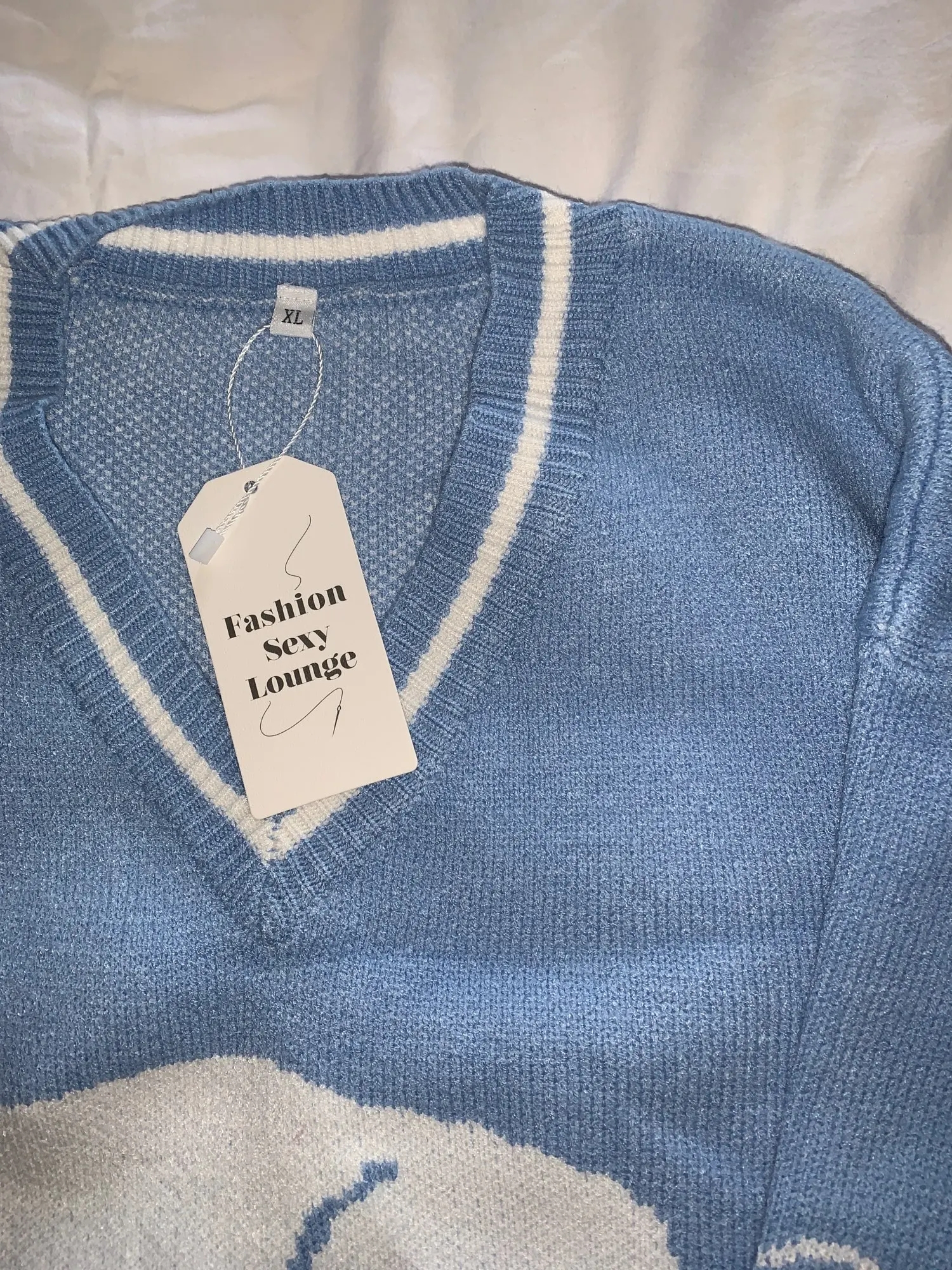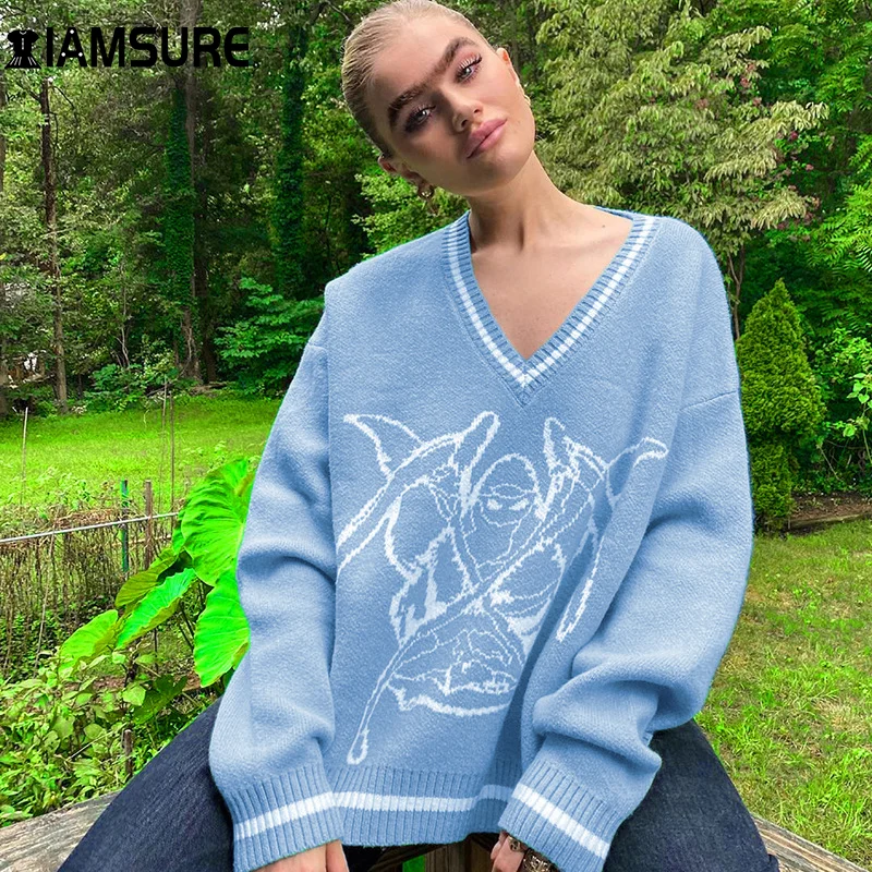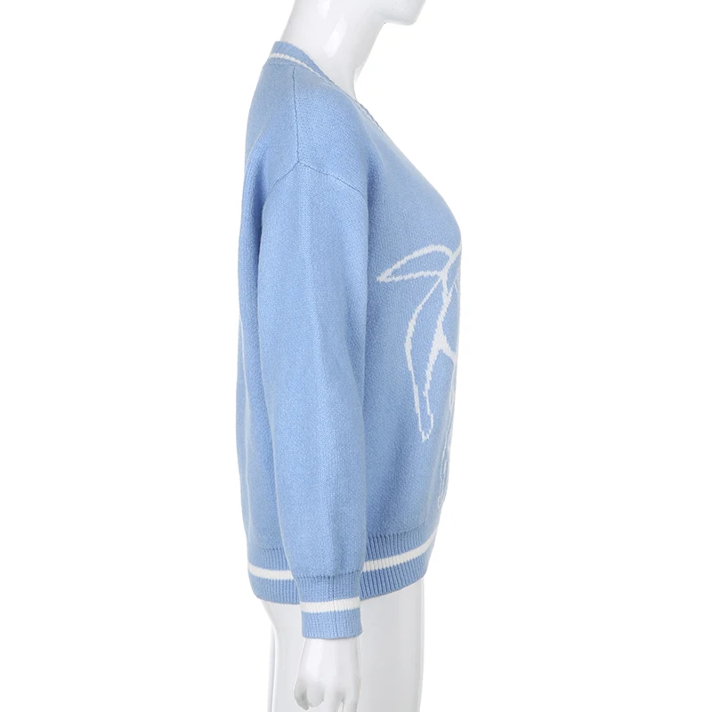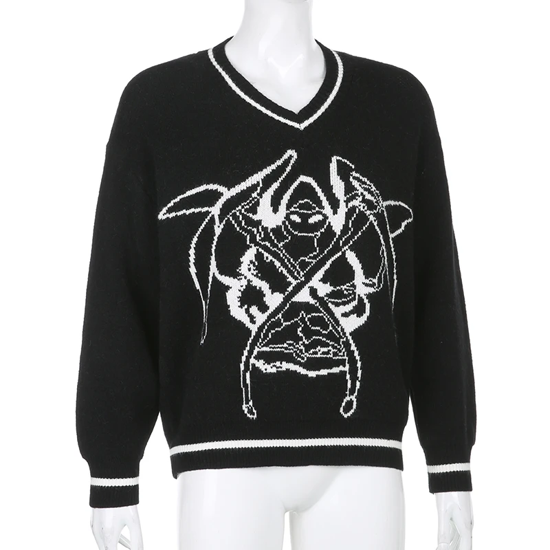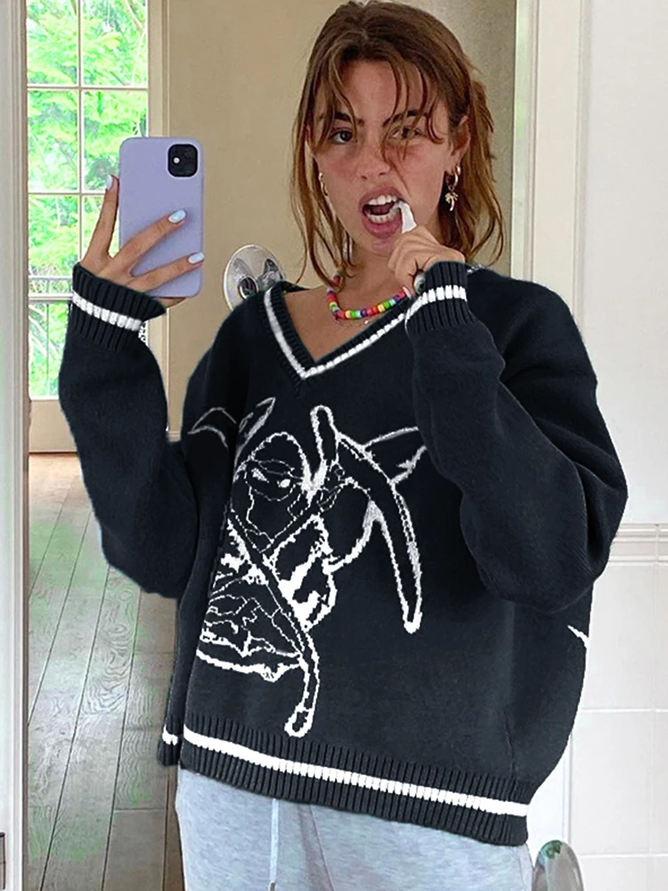 Пуловер женский трикотажный, оверсайз, с мультяшным принтом