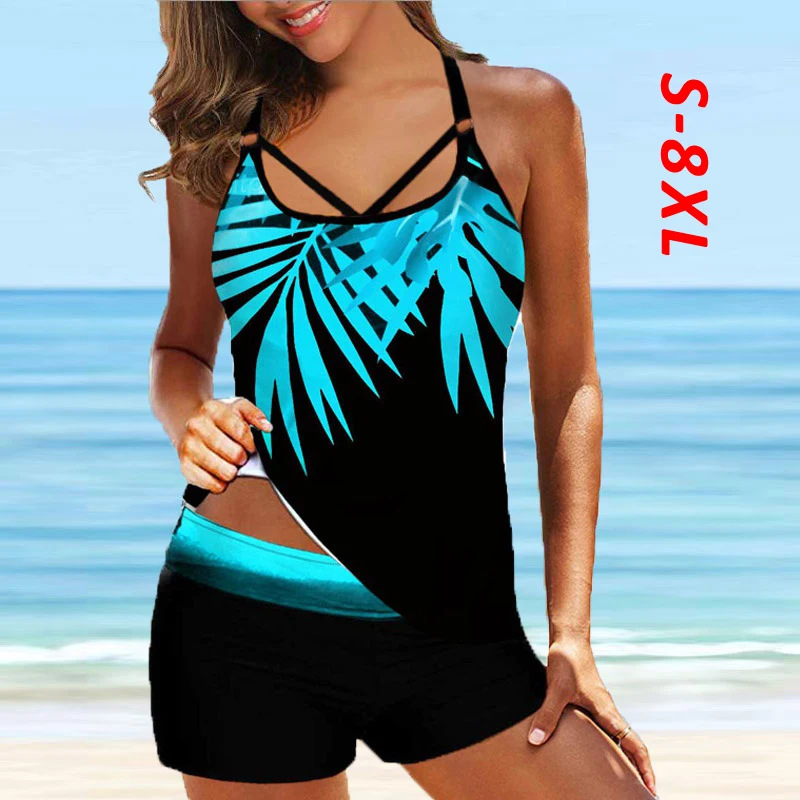 Танкини Женский, большие размеры 8XL, купальник с шортами, новинка 2021, винтажный цветочный купальник из двух частей, пляжный купальный костюм, большие танкини