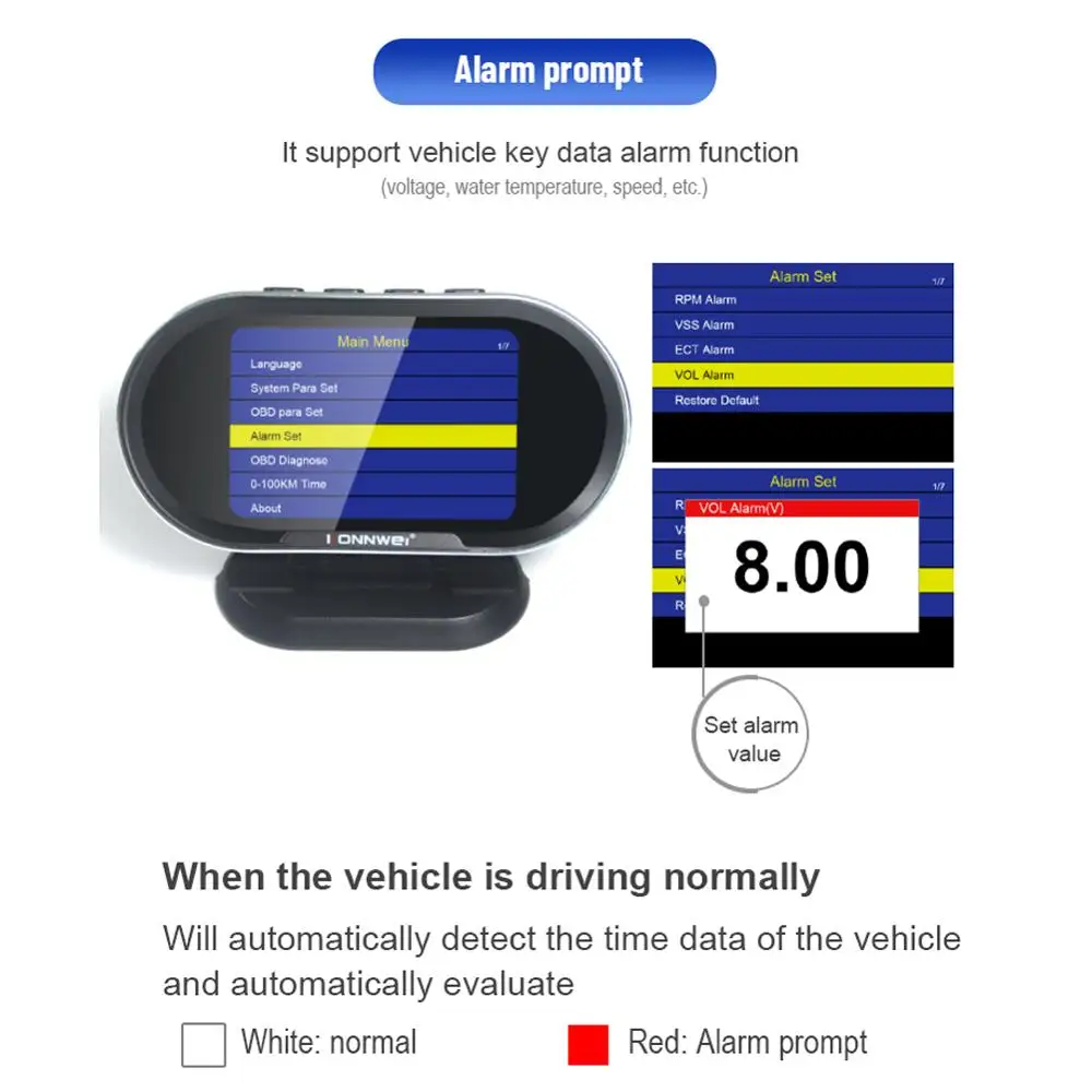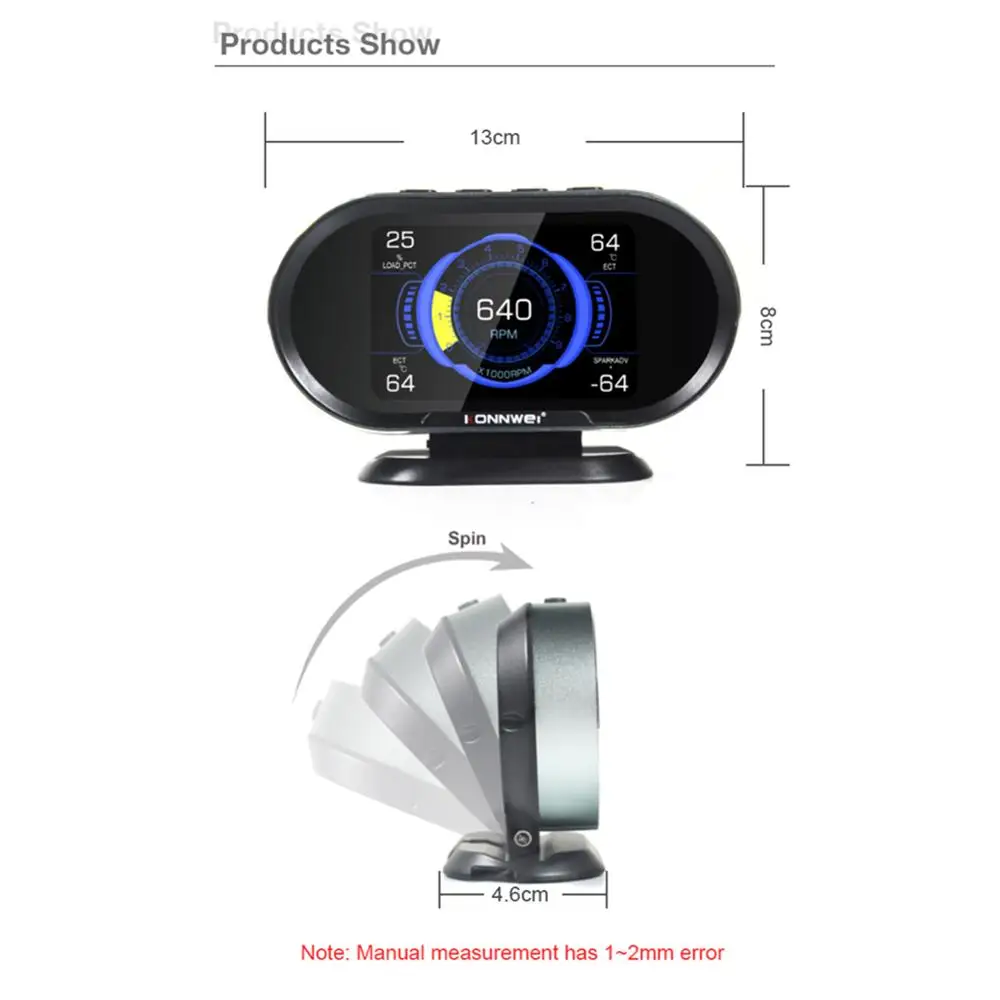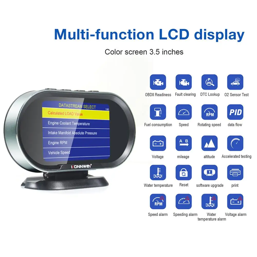 KONNWEI KW206 Автомобильный сканер неисправностей + Автомобильный дисплей с верхней поддержкой коробки 5 основных протоколов OBD2 автомобильный диагностический сканер Описание:Отображение содержания приборной панели автомобиля и определение кодов неисправностей двигателя автомобиляСистема поддержки: XP WIN7 WIN8 WIN10; Поддержка обновления онлайн-системы и печать данных о сбое * 1. Цвет: черный* 2. 3,5 дюймов TFT цветной экран* 3. Поддерживаемые языки: китайский, английский, русский, испанский* 4. Соглашение о поддержке: пять основных соглашения* 5. Применение: 12 вольт для транспортного средства* 6. Размер изделия: 13x8,4x2,58 см* 7. Вес изделия: 300 грамм Характеристика:* 1. Это сканер OBDII EOBD, который поддерживает все транспортные средства 12 В, позволяя техникам точно диагностировать даже самые сложные проблемы для чтения и удаления обычных кодов неисправностей.* 2. Дисплей head-up (HUD) интегрирует спидометр, датчик температуры двигателя, датчик температуры масла, манометр boost и датчик расхода топлива в один, И отображает эти данные на лобовом стекле для удобства использования.* 3. Он может отображать мгновенный и средний расход топлива.* 4. Поддержка ключа транспортного средства функция сигнализации данных (напряжение, температура воды, скорость и т. Д.)* 5. Существует несколько специальных систем, которые могут быть свободно переключены. Посылка включает в себя:1 OBD сканер1 х USB кабель1x16 контактный разъем1 x Руководство пользователя1 x цветная коробка