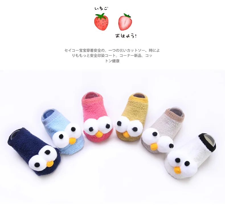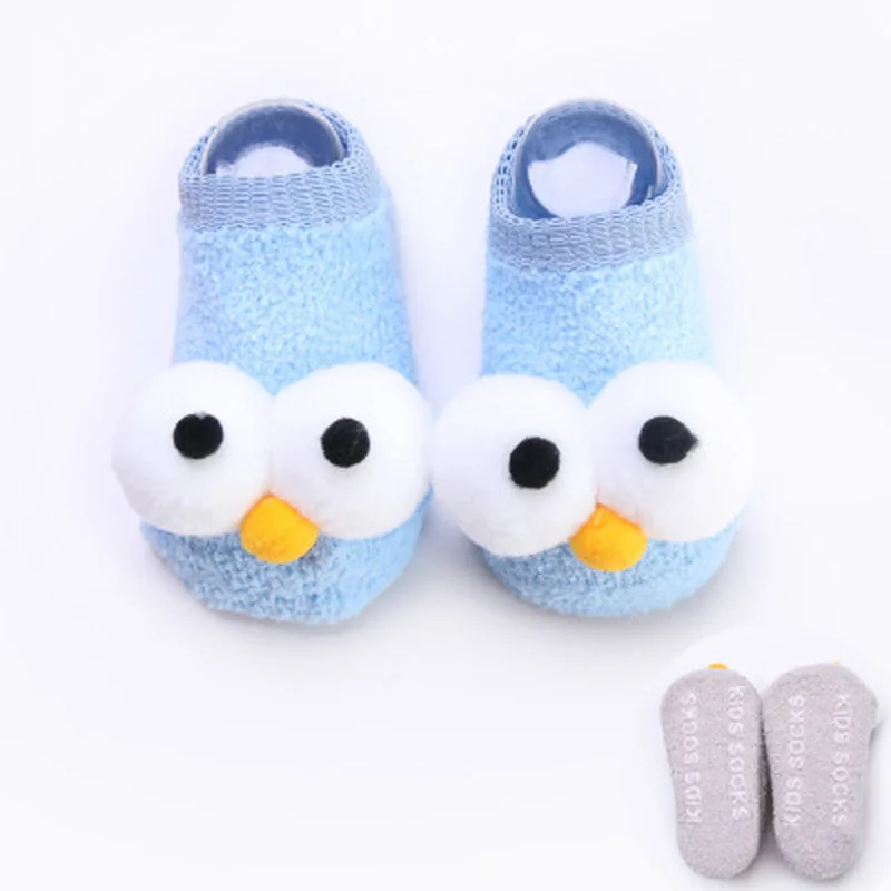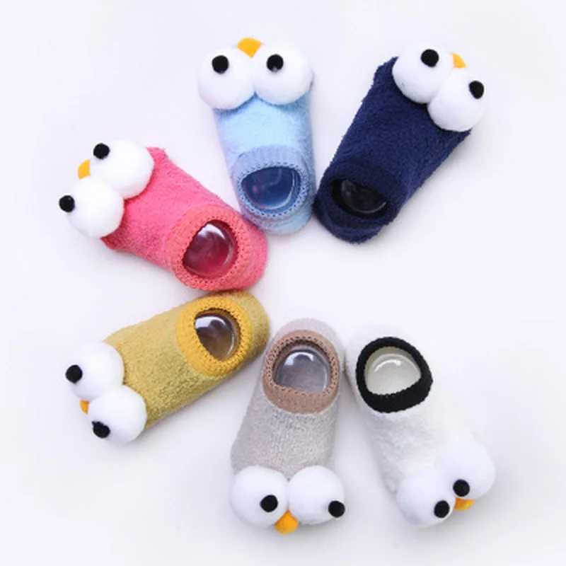Милые носки для малышей с большими глазами, хлопковые нескользящие носки для новорожденных, детские носки для пола, теплые носки из кораллового флиса, Новая мода