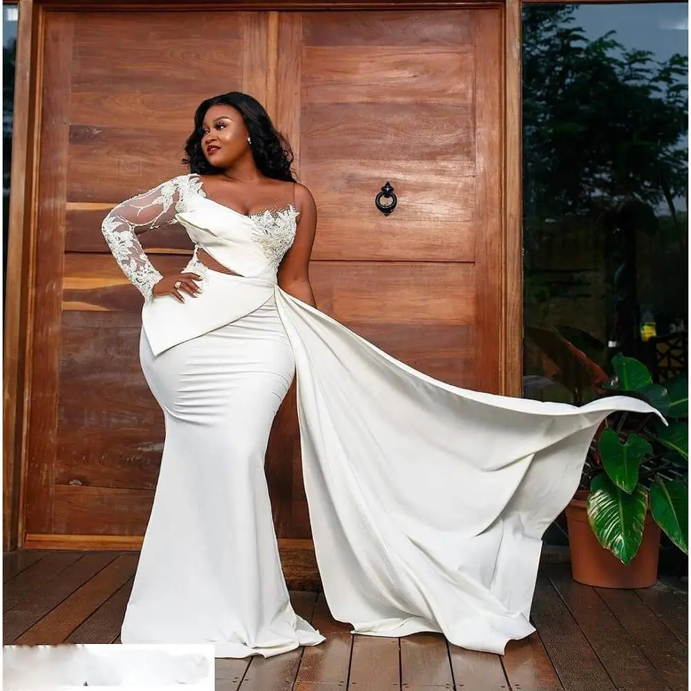 Белые привлекательные вечерние платья русалки с длинным рукавом 202...