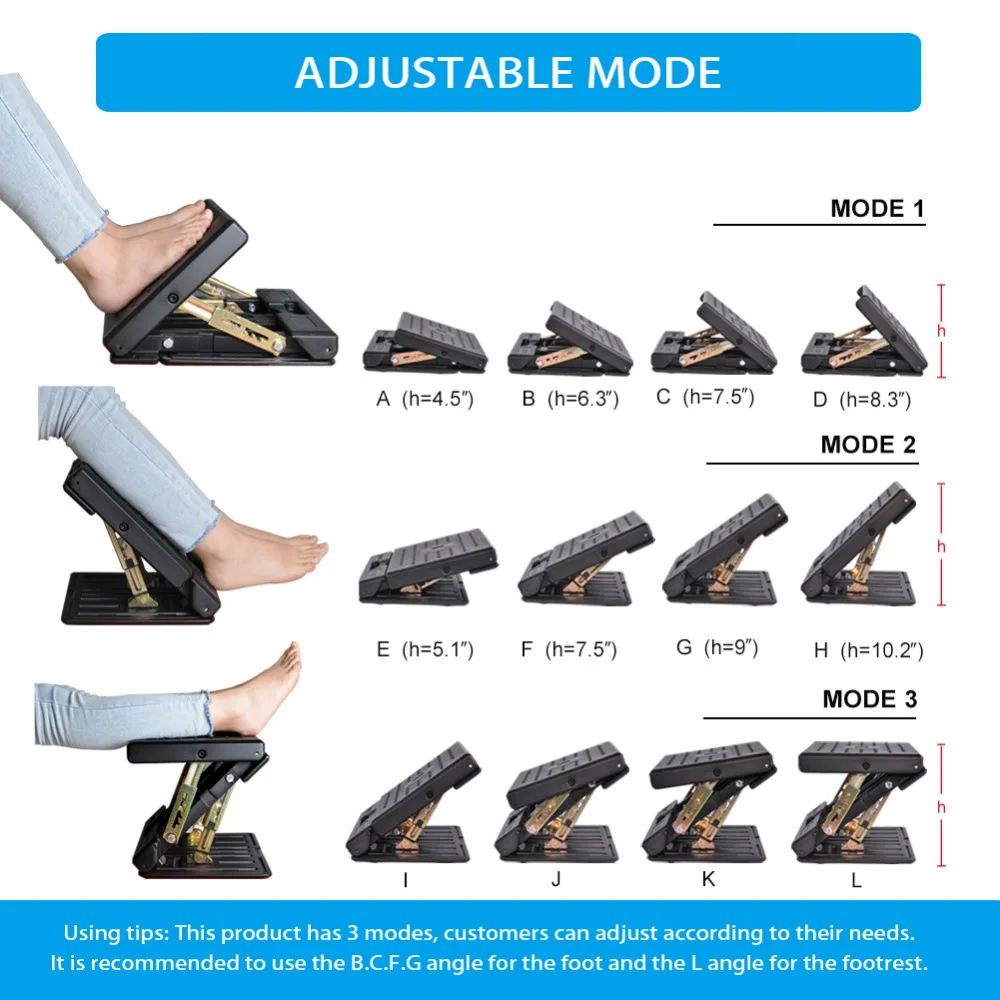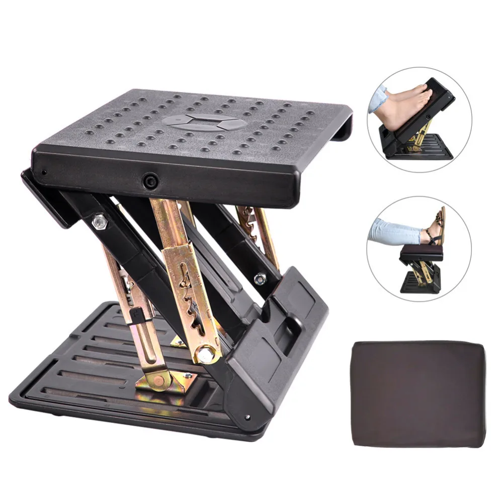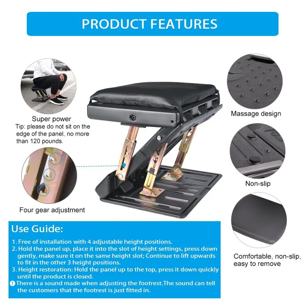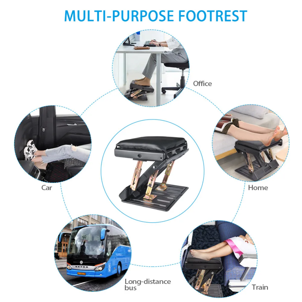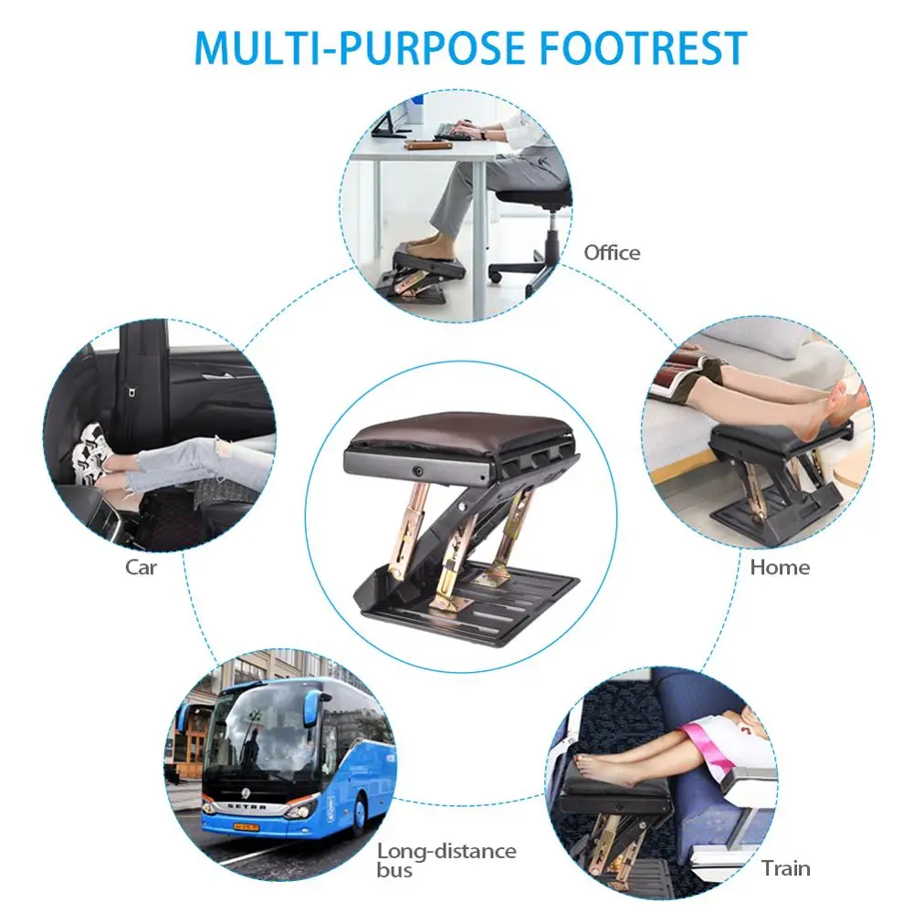 Подставка для ног с регулируемой высотой, 4 уровня, со съемной мягкой подставкой для ног, максимальная нагрузка 120 фунтов, с массажными бусинами для автомобиля, под столом