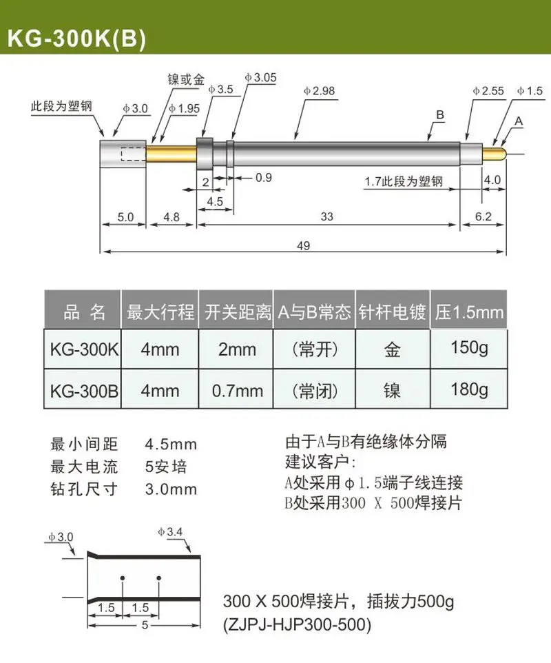 1 шт., контактный переключатель , нормально открытыйнормально закрытый зонд 3,0, тестовый контакт переключателя
