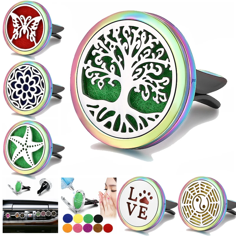 Автомобильный диффузор Дерево жизни ароматерапия Радужный цвет Магнитный медальон с отверстием из нержавеющей стали с 10 шт. подушечками