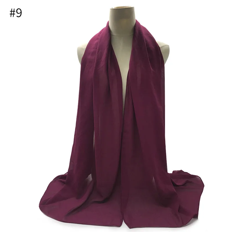 Высококачественный простой шифоновый шарф из пузырьков однотонные шали повязка на голову пляжный популярный хиджаб летние мусульманские шарфышарфы 10 шт.лот