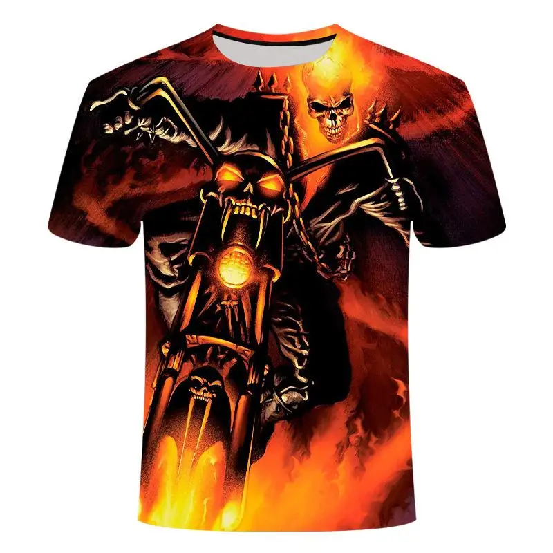 Футболка с черепом Мужская черная футболка с 3D-принтом пламени мот...