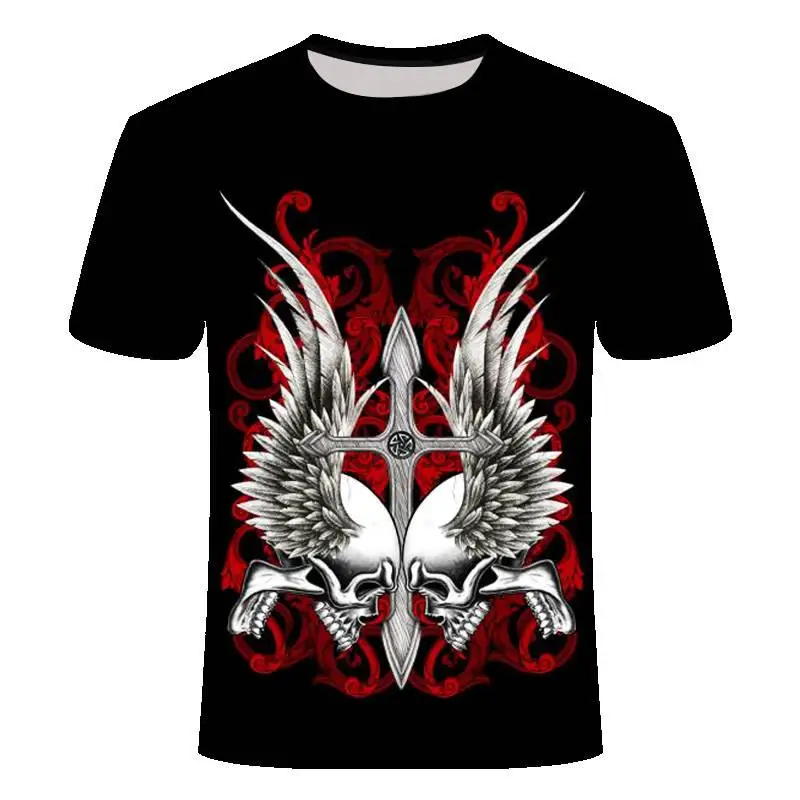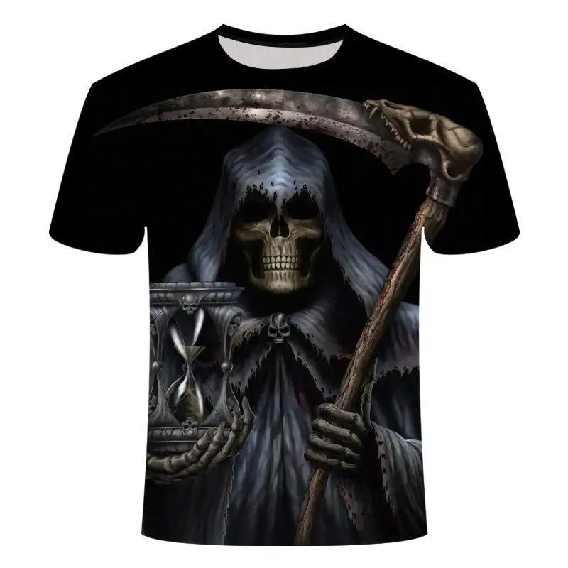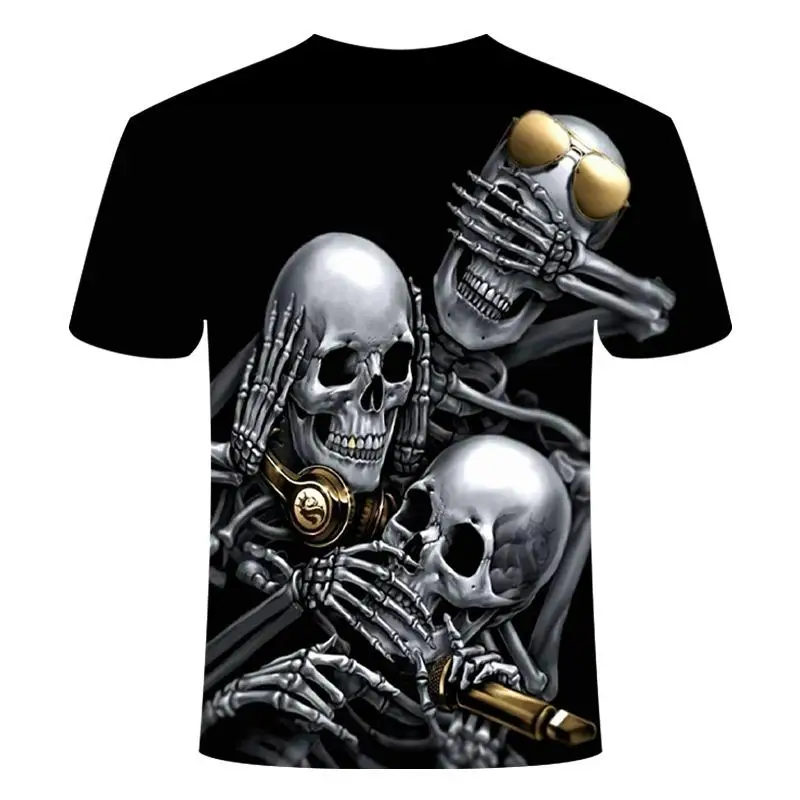 Футболка с 3D-принтом в виде черного черепа, мужская летняя футболк...