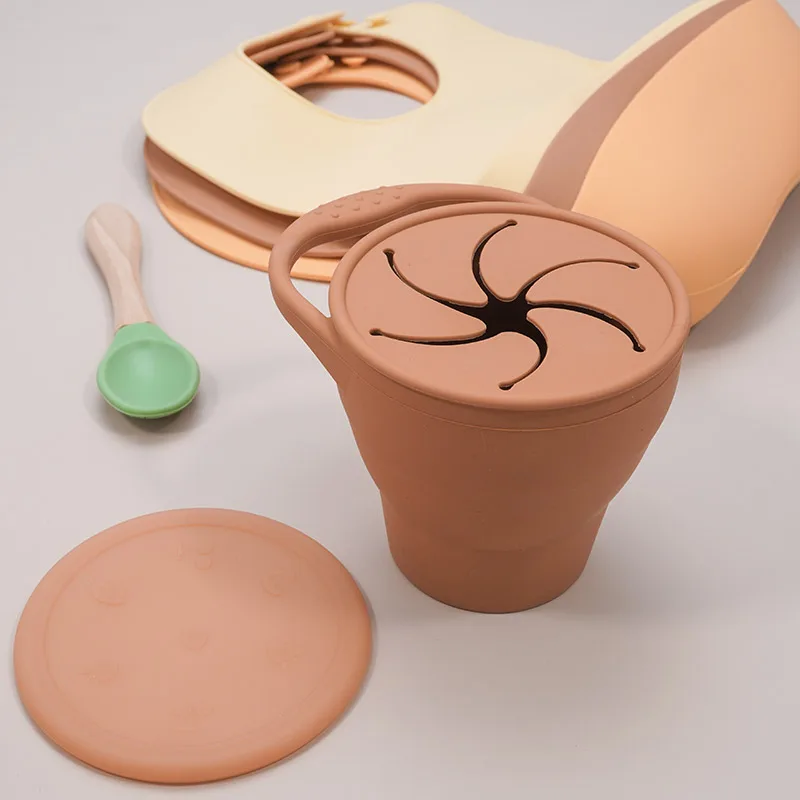 Детская силиконовая коробка для хранения еды, без бисфенола А, однотонная Детская кружка для закусок, портативная детская контейнер для закусок с крышкой