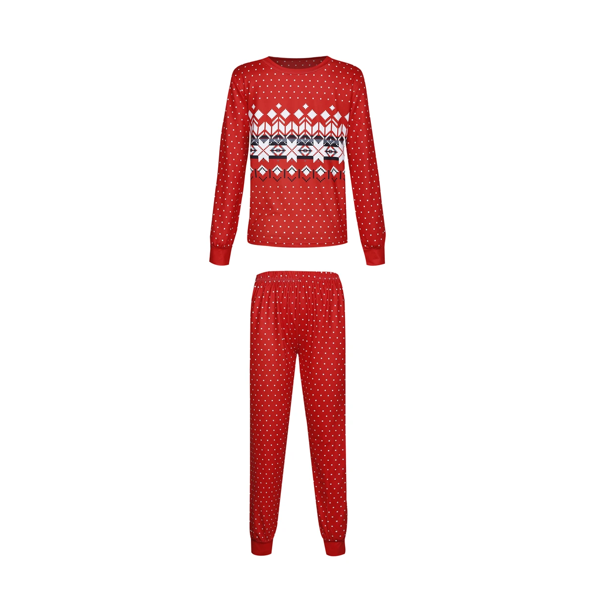 Новый Рождественский костюм с принтом красных ромбиков для родителей и детей Свободная пижама с длинным рукавом и круглым вырезом Семейные пижамные комплекты из двух предметов