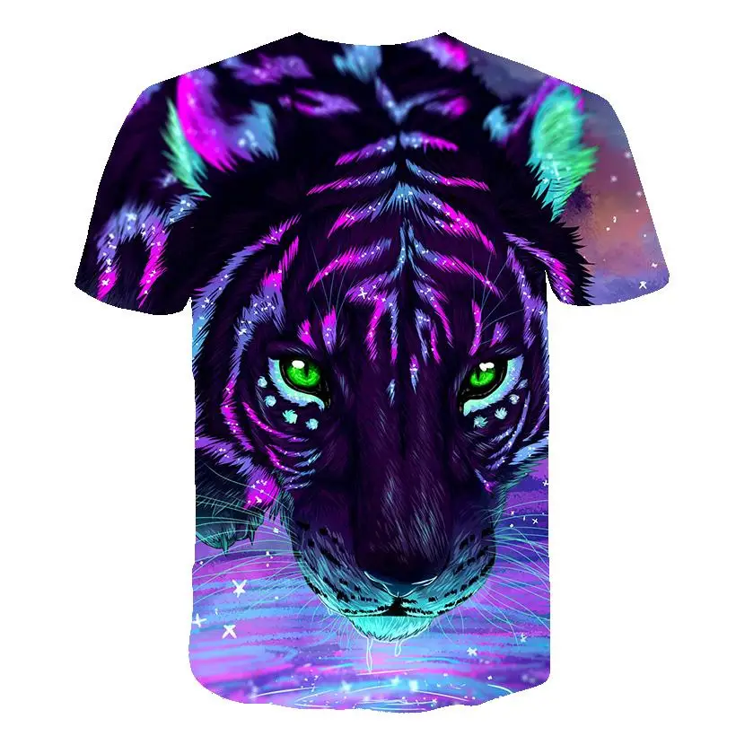 Футболка с 3D-принтом тигра и коротким рукавом для мальчиков и девочек