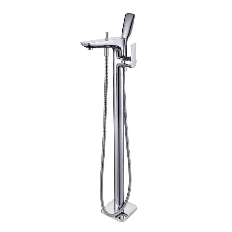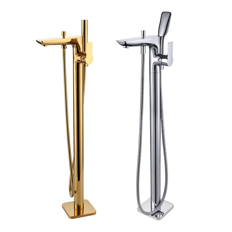 Золотистыйхромированный латунный смеситель с напольной подставкой для ванны, смеситель с одной ручкой, смеситель с поворотом на 360 градусов, смеситель для ванны с ручной душевой лейкой