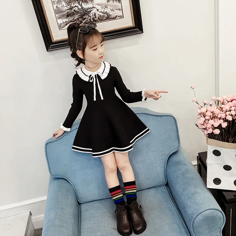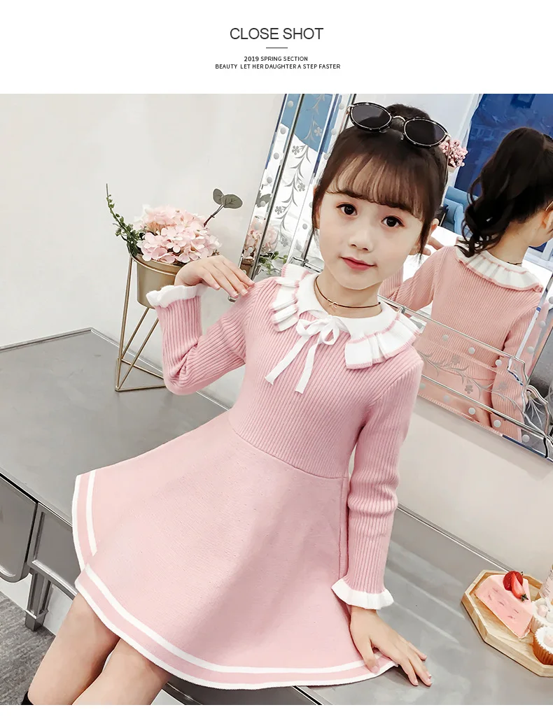 Вязаное платье для девочек, однотонное, Осеннее, детское, теплое, п...
