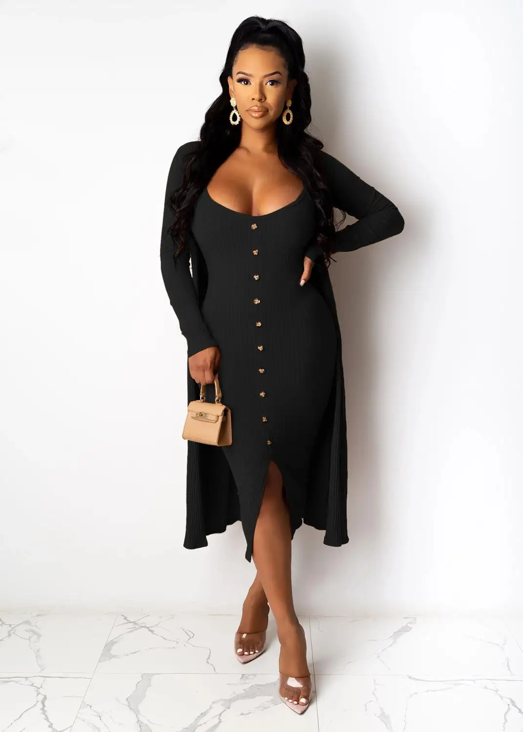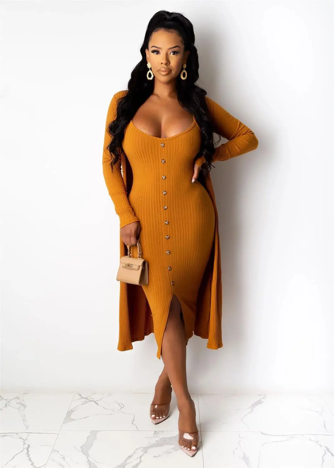 Женский трикотажный винтажный Топ с длинным рукавом, облегающее платье миди без рукавов, костюм из 2 предметов, комплект одежды для фитнеса, комплекты со штанами