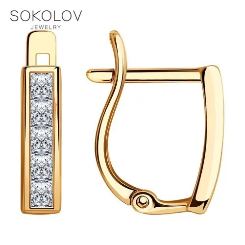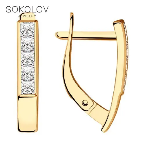 Серьги SOKOLOV из золота с фианитами, Золото, 585, Женские, Серьги 2022 тренд, Оригинальная продукция