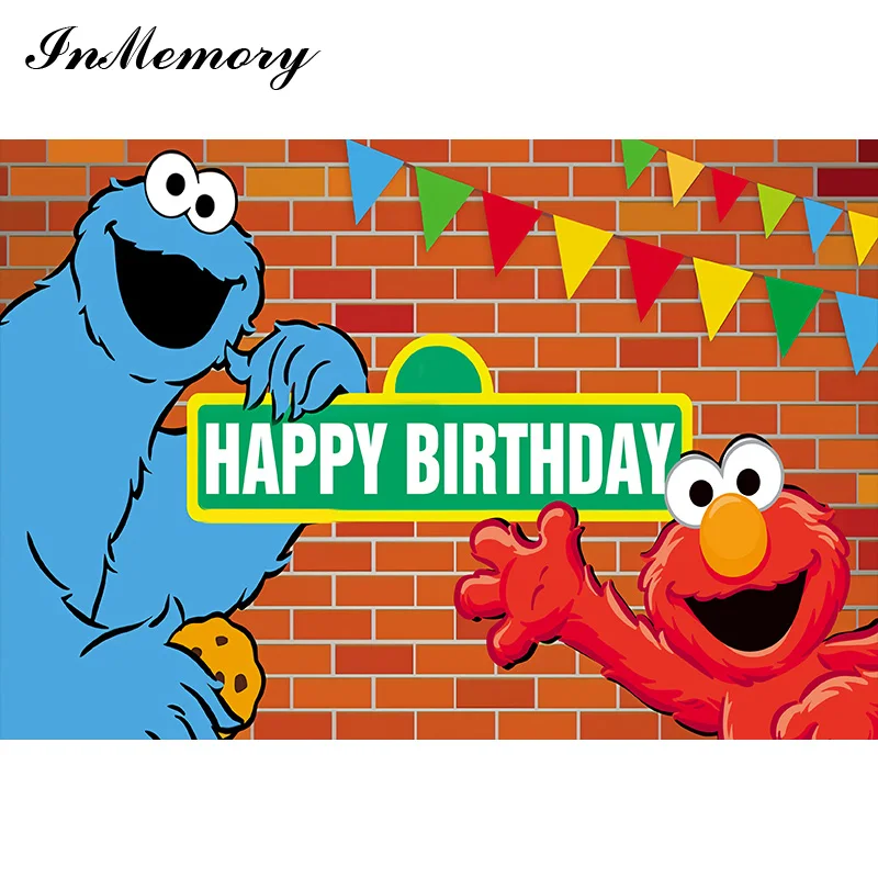 Виниловый фон InMemory для фотосъемки с изображением Улица Сезам, детский фон для фотосъемки на 1-й день рождения с изображением торта и украшения стола 5x3 фута