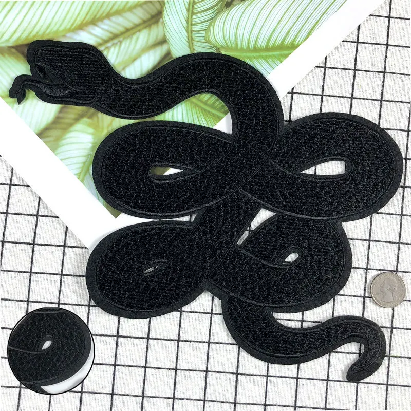 Большой тонкий черный питон Черная Мамба змея вышитая ткань обратная сторона Клея Аксессуары для одежды уникальная личность DIY нашивка для одежды