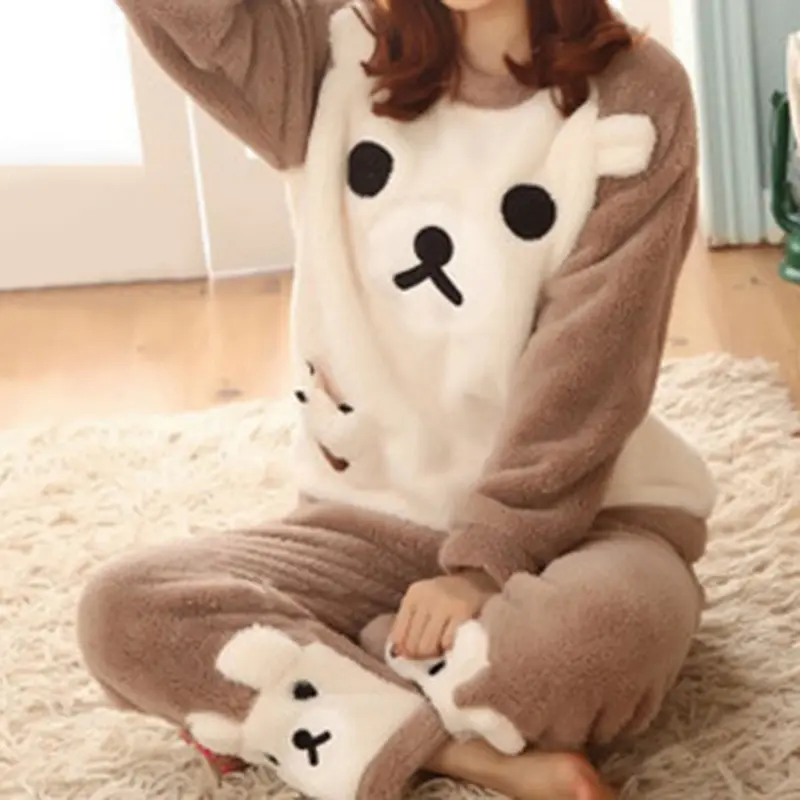 Пижама женская толстая фланелевая теплая женская зимняя пижама с длинным рукавом Длинные брюки Пижама из двух предметов животное мультяшная сова