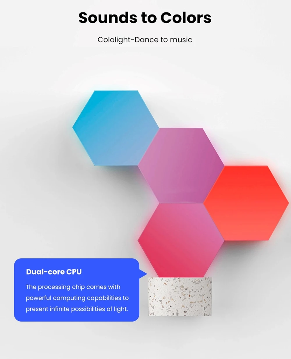 LifeSmart Colo светильник PRO умный квантовый светильник Esports украшение для игры DIY креативный светильник набор каменная основа работа с Alexa, GoogleОписание:Cololight может быть соединен в различные формы, чтобы удовлетворить ваше воображение. Форма эксагонального блока может быть расширена бесконечно. Подходит как для взрослых, так и для детей.Через блок освещения, контроллеры, разъемы и базы, неограниченное количество коллайтеров могут быть размещены для различных форм и цветов.