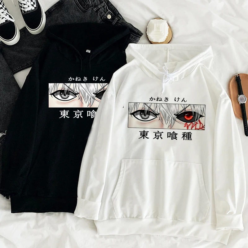 Толстовка с капюшоном в стиле японского аниме Kaneki Ken Eye, с принтом манги, свободная толстовка в стиле панк, Женская толстовка большого размера в стиле Харадзюку, уличная одежда
