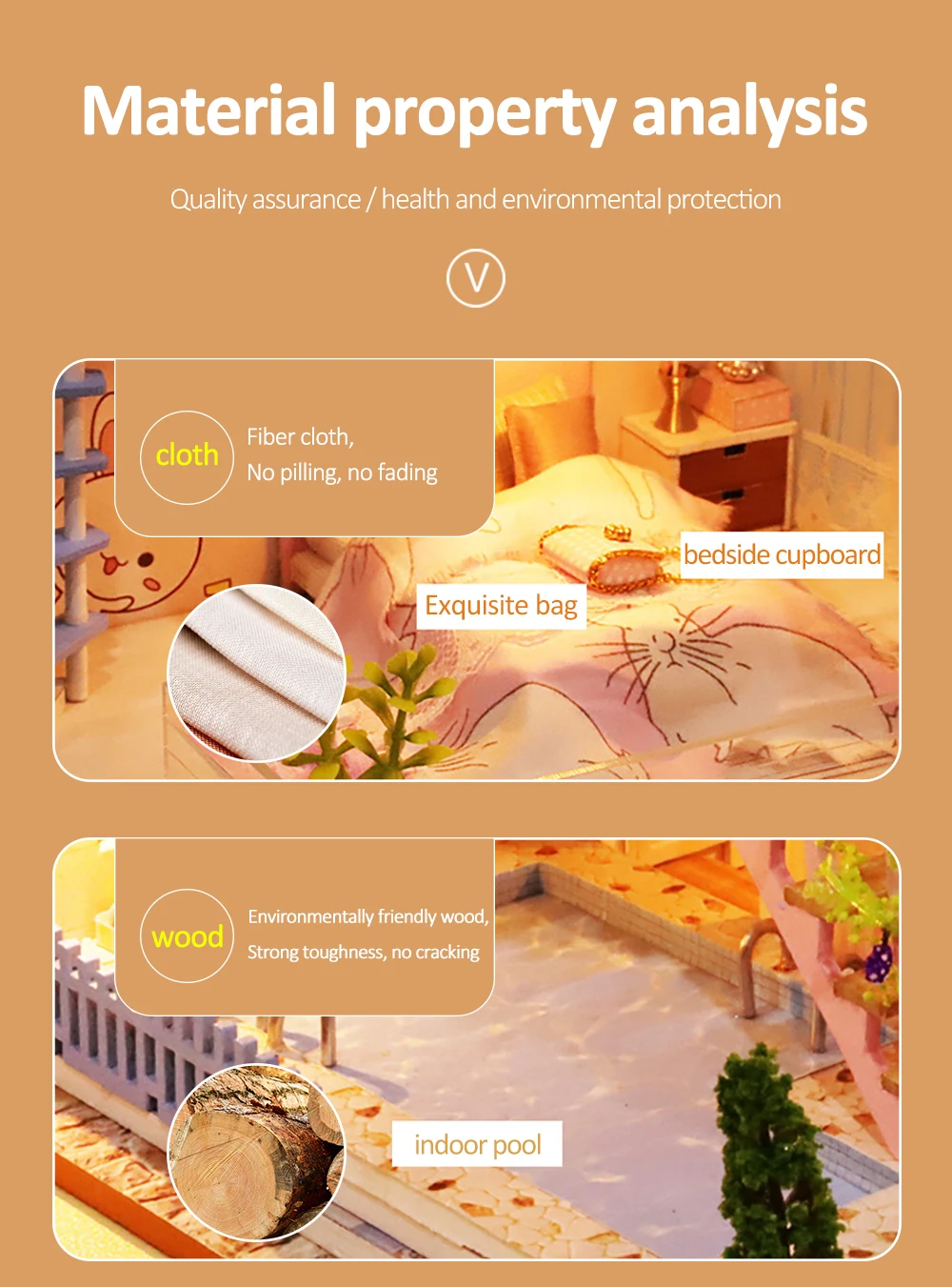 Подарок: купите 1 Кукольный домик и получите 1 Набор инструментов для сборкиВсе товары такие же, как на изображении. Они поставляются с деталями, и вам нужно собрать их самостоятельно.Если вы, наконец, столкнулись с какими-либо проблемами в процессе установки, пожалуйста, свяжитесь с нами1. Тип: двухэтажная вилла2. Размер готовой продукции: 27*19*23 см3. Материал: дерево, ткань, бумага, смола, пластик, материал4. Руководство: с инструкцией на английском языке5. Вы можете выбрать товары С Пылезащитным чехлом или без негоПримечание:1. Не включает клей/аккумулятор.2. Возраст: для детей старше 8 лет3. Дети младше 3 лет должны сопровождаться взрослым4. Если вам понравился этот товар, добавьте его в «список желаний».Если вам нравится наш магазин, добавьте его в «Список магазинов».Мы предоставляем профессиональный сервис прямых покупок. Мы гарантируем, что в посылка входят счета-фактуры, рекламные материалы, визитки. Кроме того, мы предоставляем полный сервис отслеживания груза, чтобы обеспечить безопасное прибытие груза.