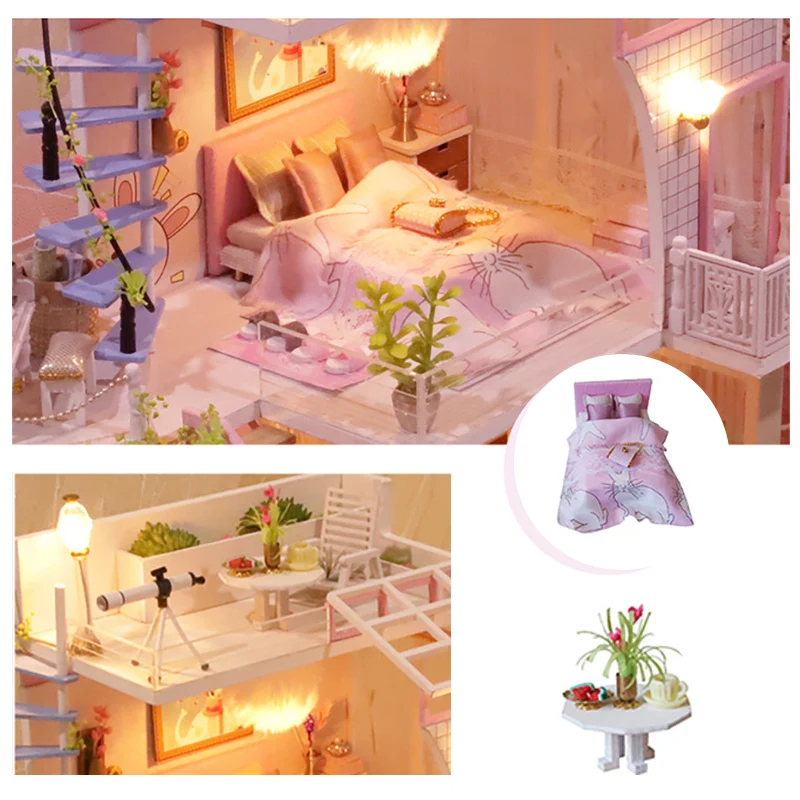 Деревянный кукольный домик сделай сам, миниатюрный строительный комплект, мини-домики Roombox, большой кукольный домик с мебелью, подарок Aldult, игрушки для детей, домик
