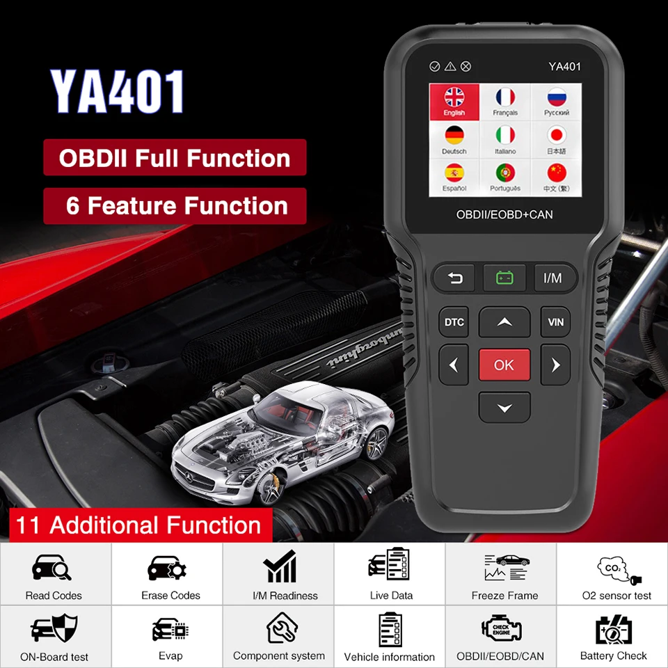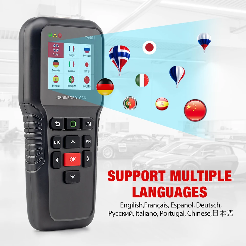Диагностический сканер OBD2, автомобильный диагностический прибор YA401, с многоязычной подсветильник для проверки ошибок двигателя