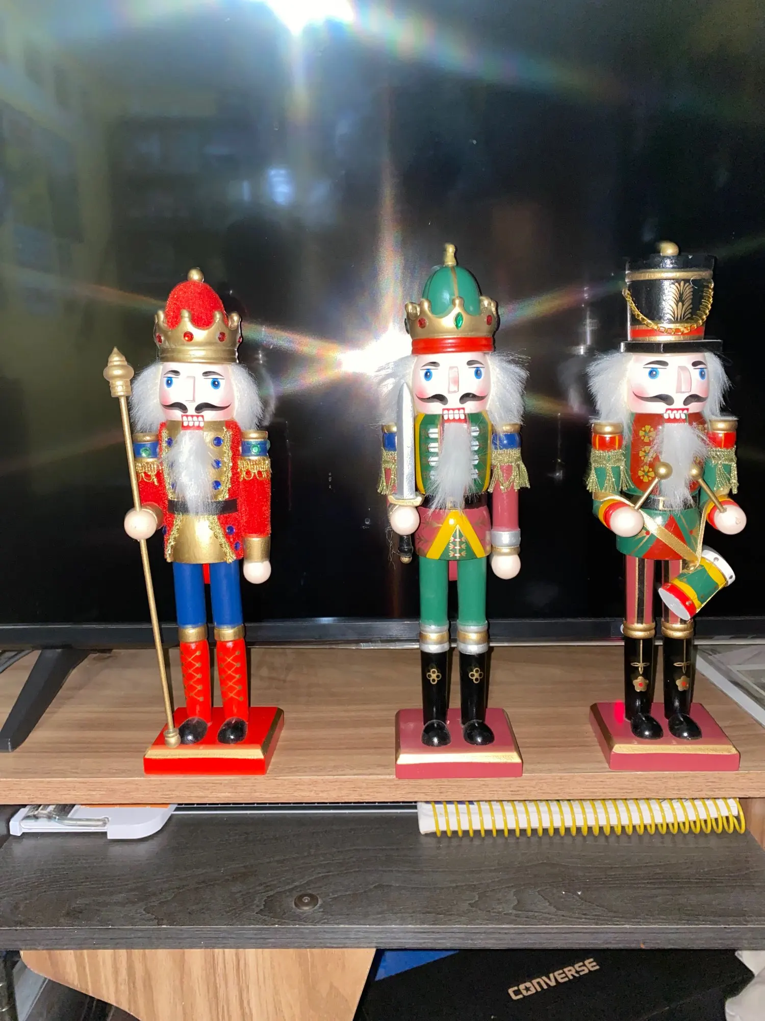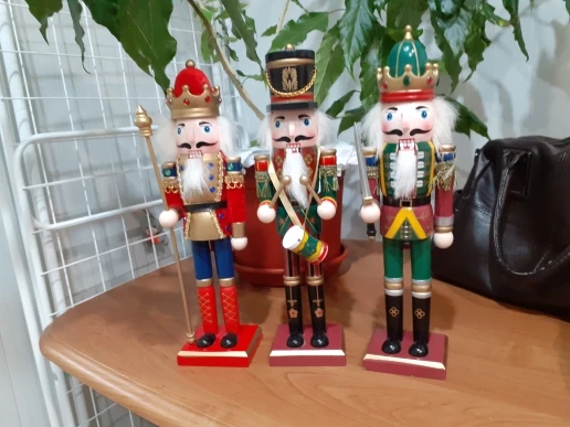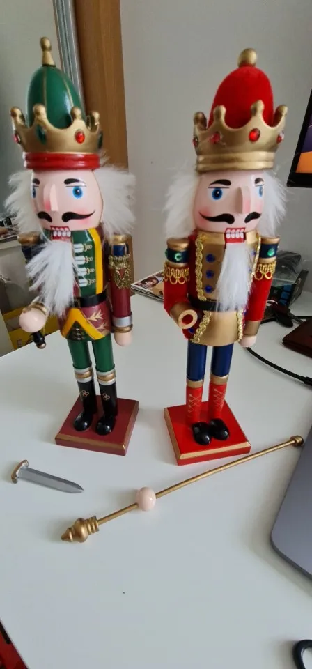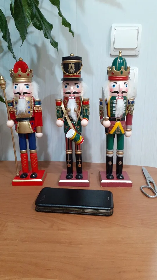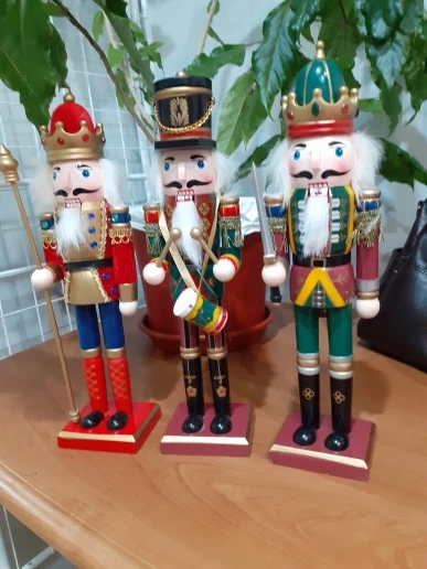 Пришли на месяц раньше заявленного срока доставкой на дом. Продавцу стоит уделить внимание упаковке, тк вероятность что детали обломятся очень велика ! Трещина на корпусе одно, повалился меч. Я брала щелкунчиков для дальнейшего декора , поэтому ставлю 4* , но для меня они подошли идеально