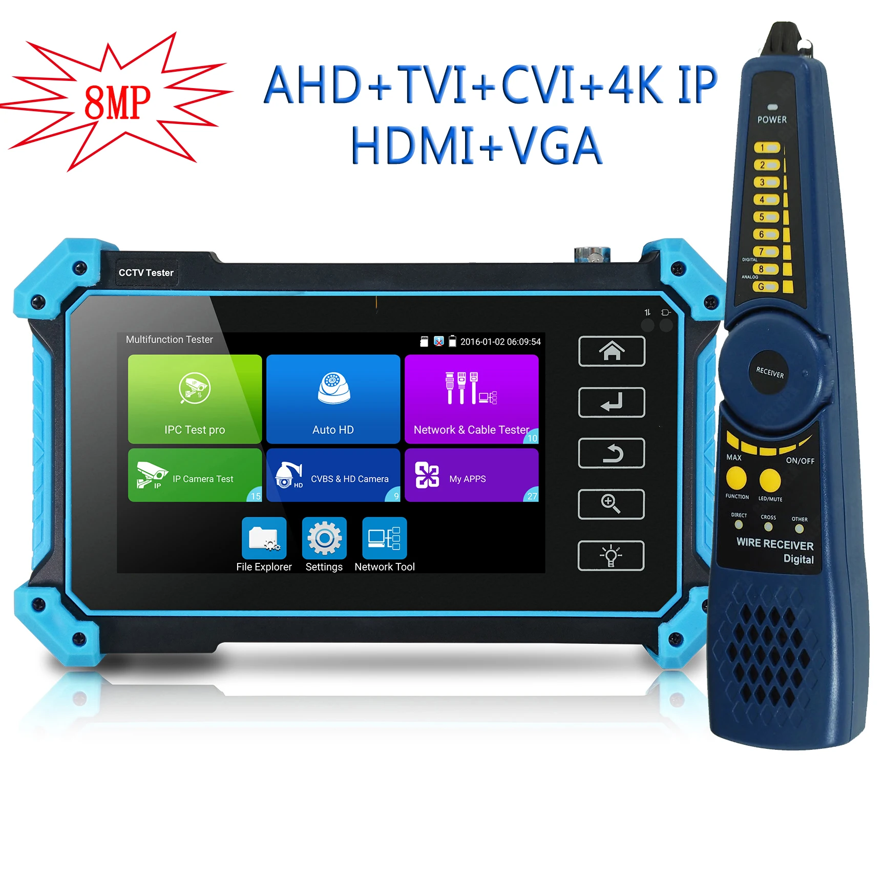 Тестер Скрытого видеонаблюдения Ex-sdi 3G-sdi, Cvi Tvi Ahd 8MP Cvbs, Аналоговый тестер VGA-in для систем видеонаблюдения, тестер для IP-камер 4K H.265