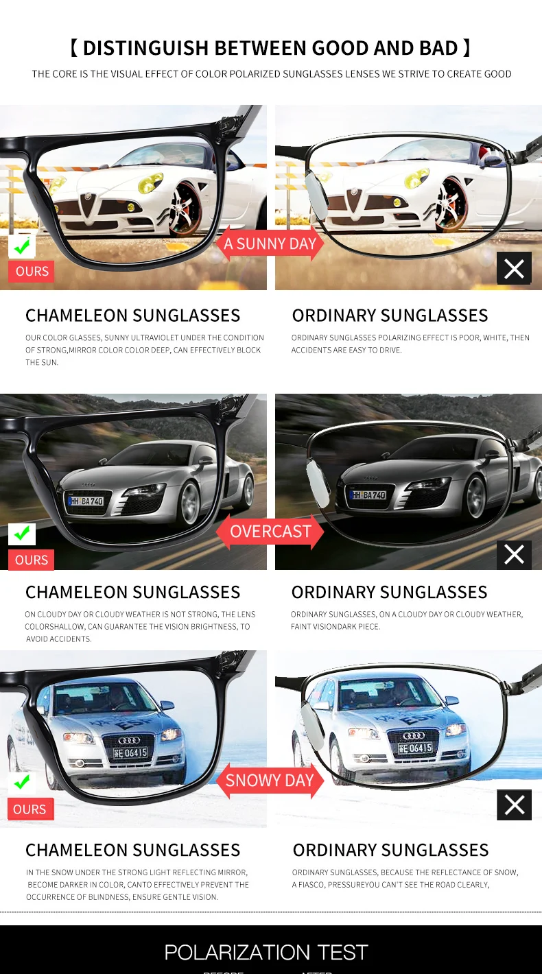 Солнцезащитные очки унисекс, фотохромные, поляризационные, дневное ...
