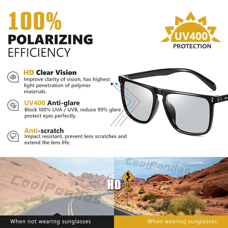 Солнцезащитные очки поляризационные для мужчин и женщин, умные фотохромные квадратные солнечные очки, для вождения, 2022