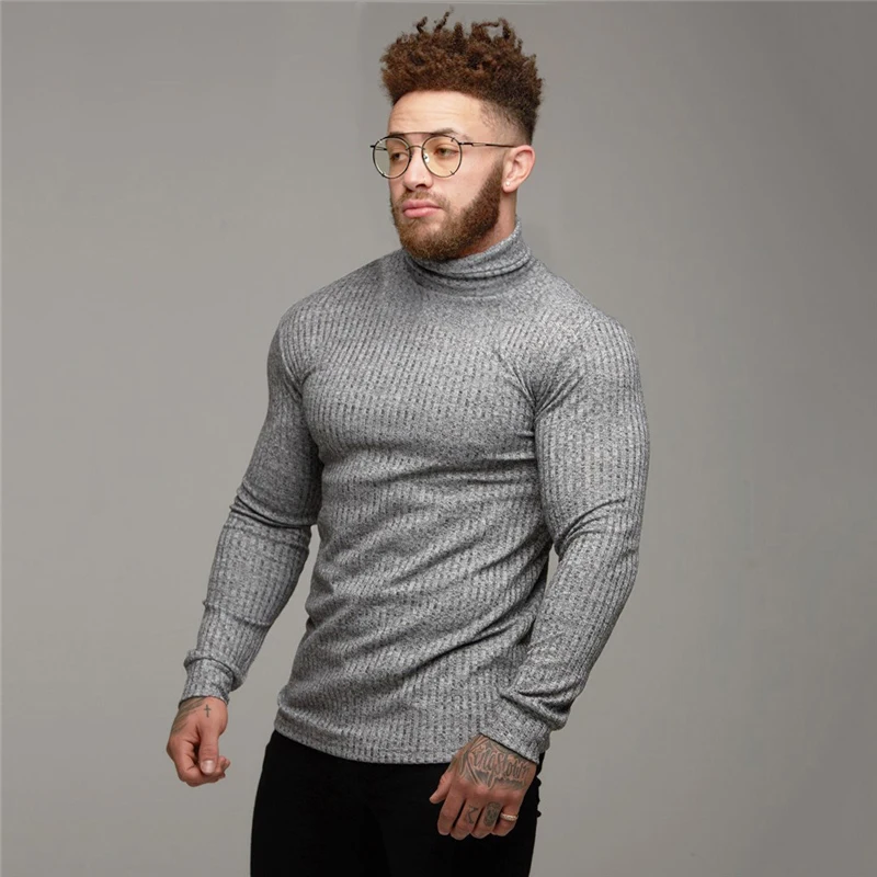 Осенне-зимние модные мужские тонкие свитера с высоким воротом, повседневные одноцветные теплые облегающие свитера, мужские водолазки, пуловер для мужчин