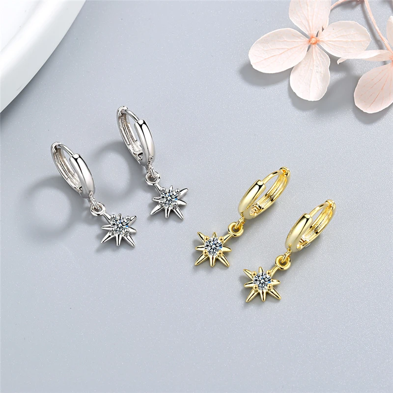 Женские серьги-кольца со звездами, золотистого и серебристого цвета