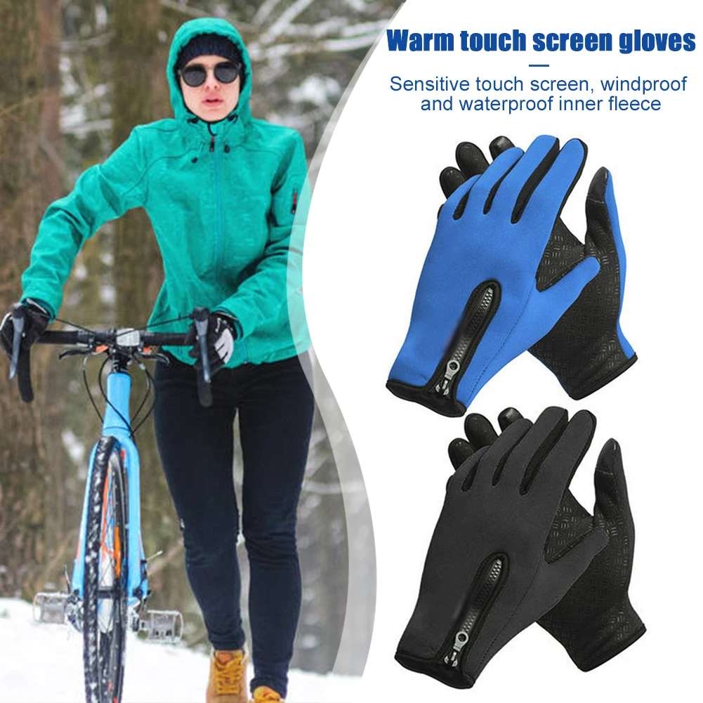 Зимние велосипедные перчатки для мужчин и женщин, ветрозащитные флисовые теплые перчатки для велоспорта, пешего туризма, лыжного спорта, перчатки на молнии для верховой езды