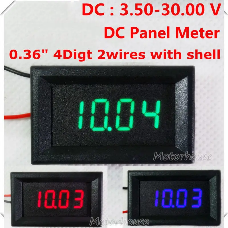 Панель постоянного тока 4 цифросветодиодный одного измерителя напряжения + Корпус вольтметра постоянного тока автомобильный аккумулятор 2-проводной постоянный ток 3,5 в 5 в 12 В 24 в 30 в синийзеленыйкрасный дисплей