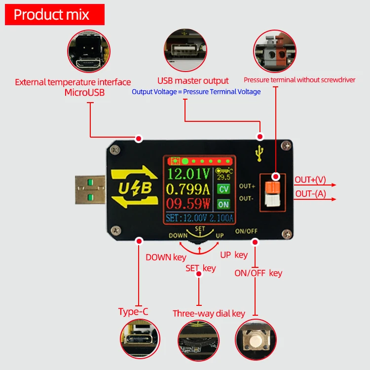 XY-UDP цифровой преобразователь постоянного тока с USB, CC CV 0,6-30 в, 5 В, 9 В, 12 В, 24 В, 2 А, 15 Вт, настольный Регулируемый источник питания