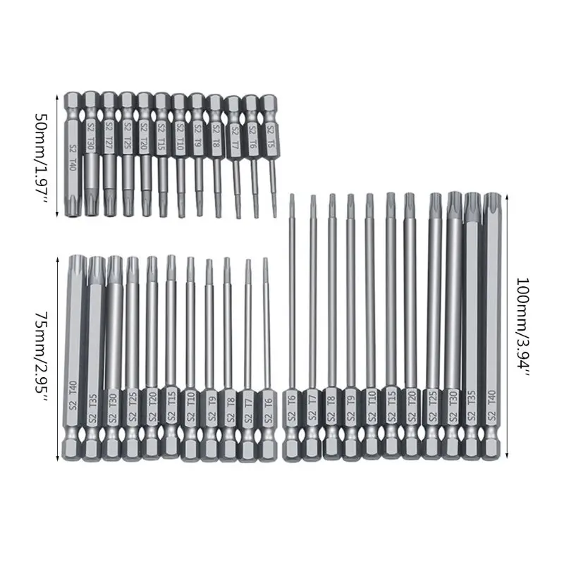 Насадки для отверток изготовлены из легированной стали S2, которая обычно используется в оборудовании с высокой твердостью.