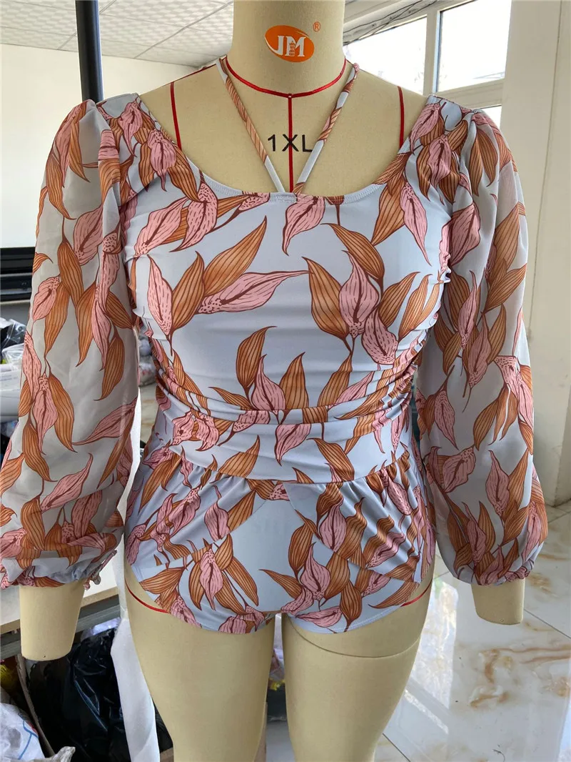 Бикини женское шифоновое с пуш-ап и длинным рукавом, 4XL