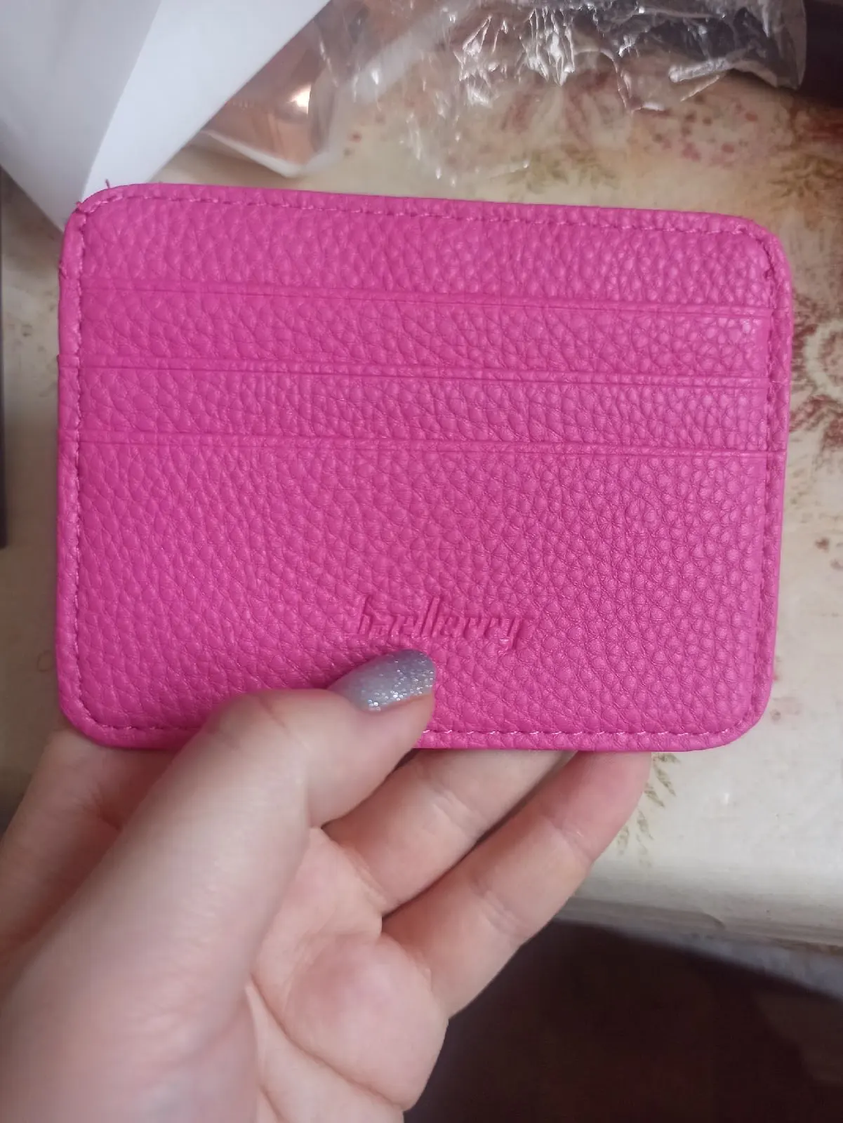 Очень понравился этот мини бумажник, реально тонкий. Аккуратно пошит из кожзама, влазят права, техпаспорт, 3 карты и пара-тройка купюр и все равно остаётся тонким. Очень доволен приобретением. Добрался в Киев Укрпочтой за 20 дней, почтальон бросил в почтовый ящик. Респект продавцу!