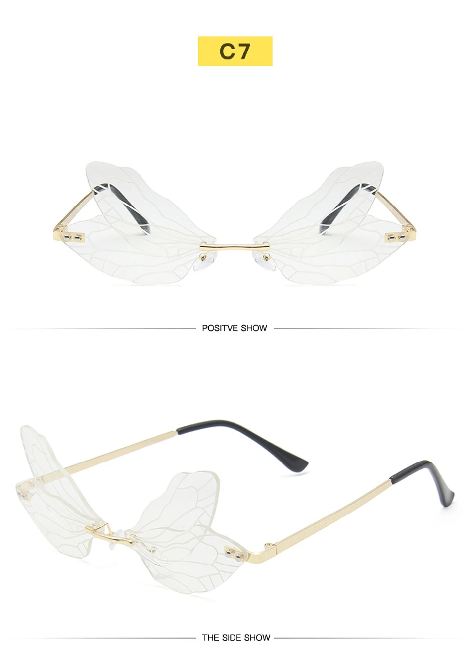 Солнцезащитные очки женские, без оправы, с металлической бабочкой